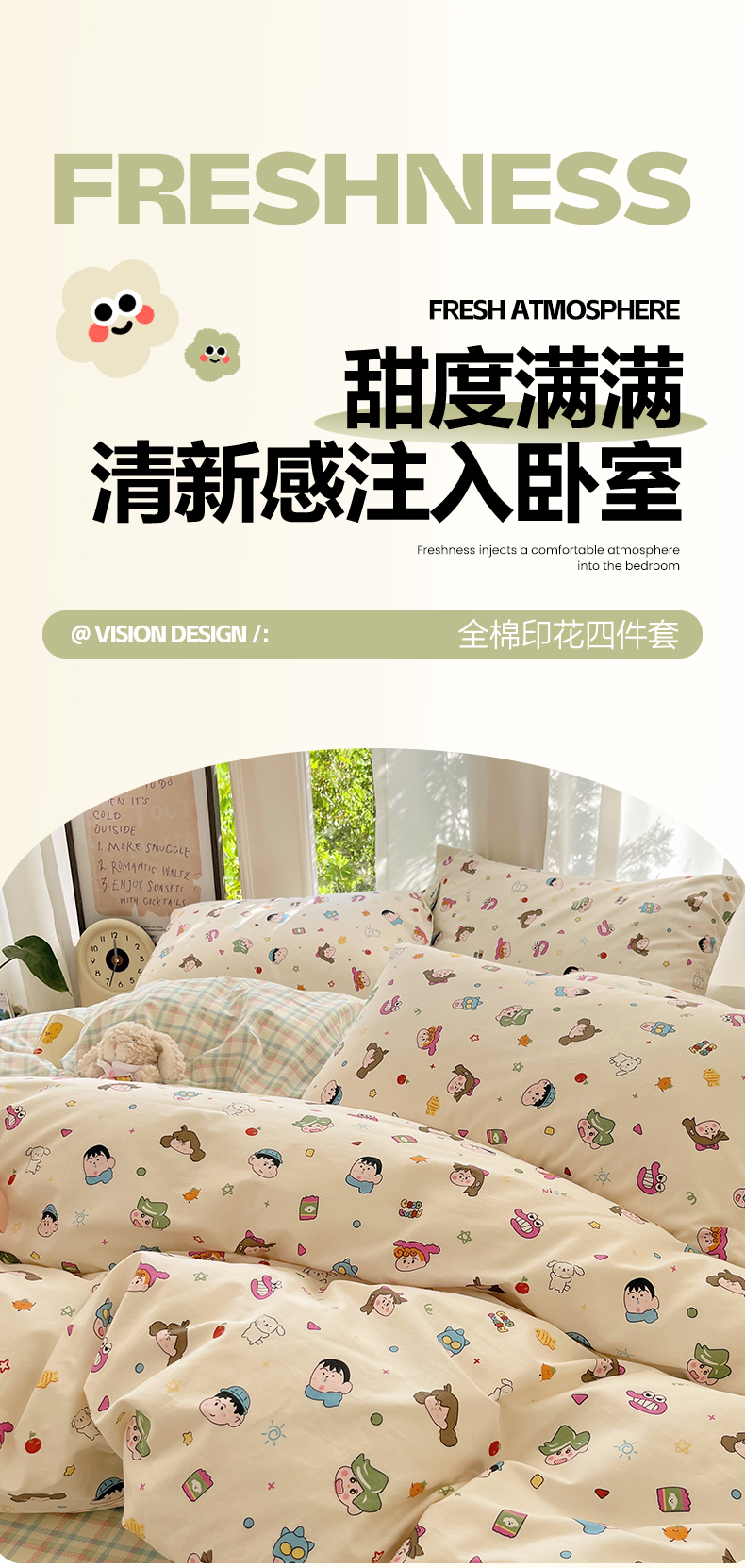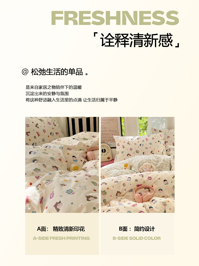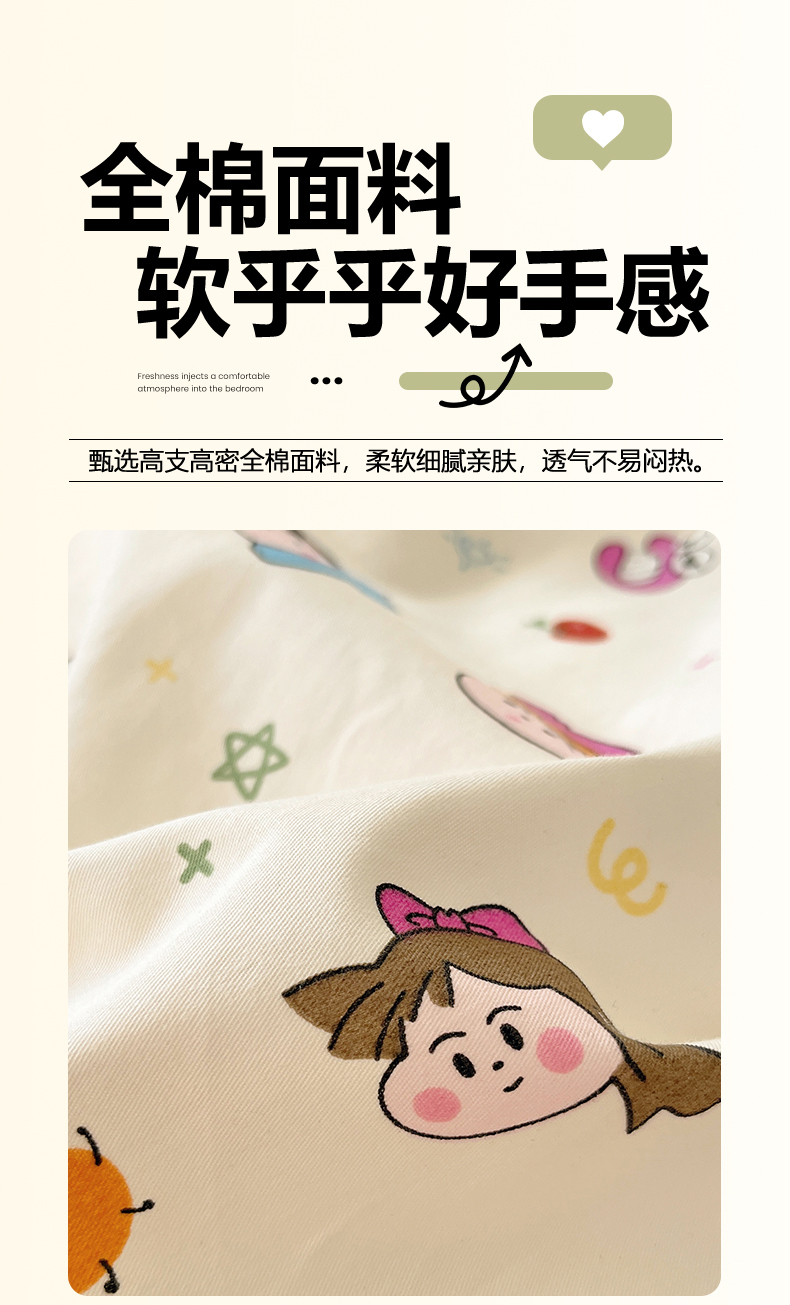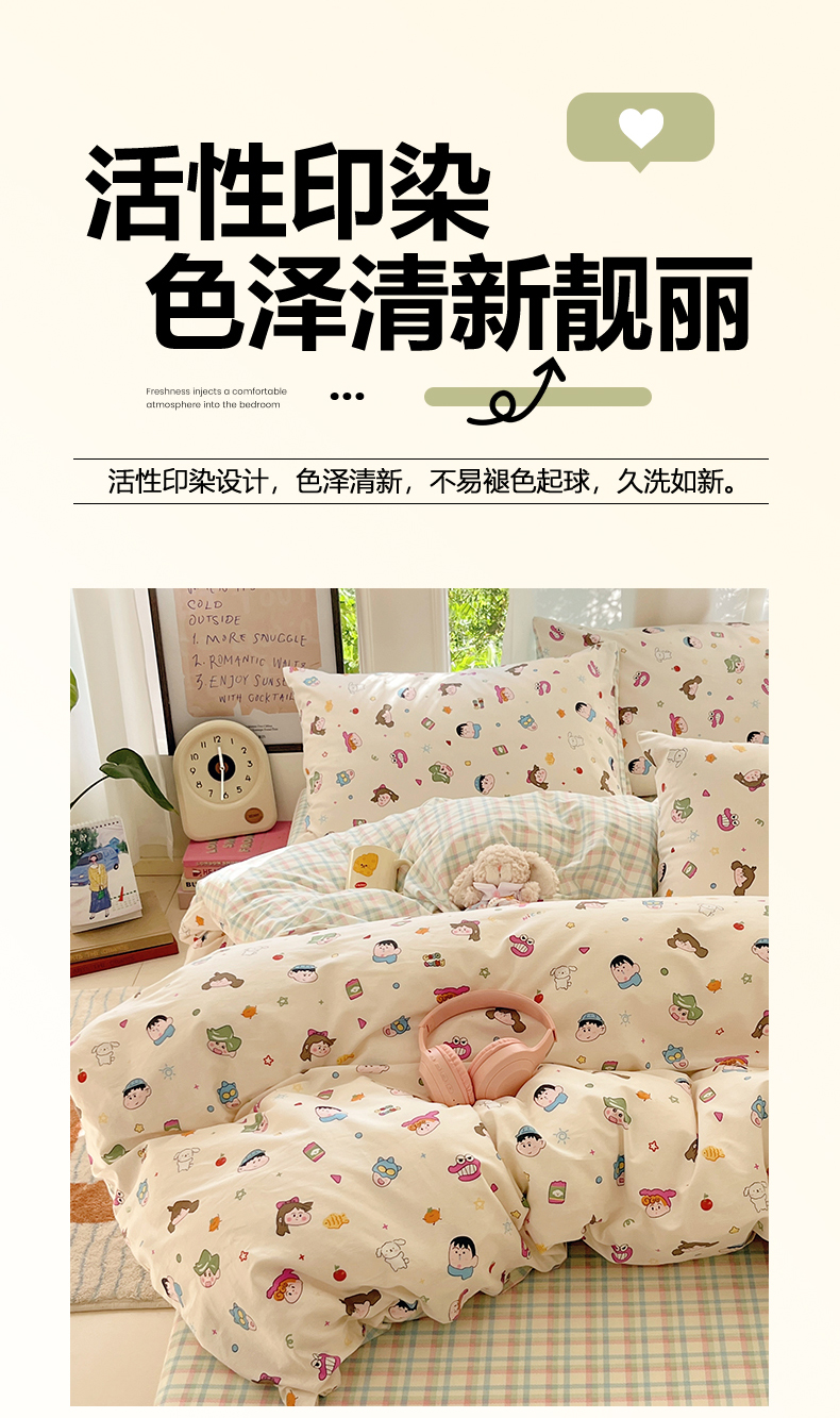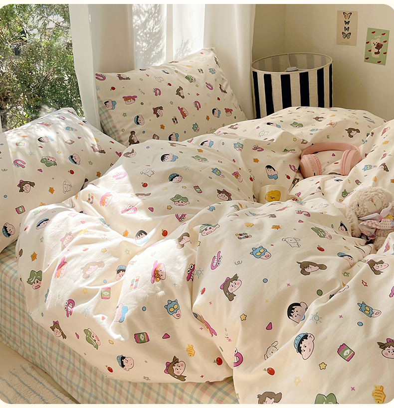 当前位置: 91家纺网 > 商品网购 > 床品套件 > 四件套 > 全棉普通四件套 > 吉象家纺 2025新款亲肤舒适全棉纯棉小清新卡通系列四件套 新新一家