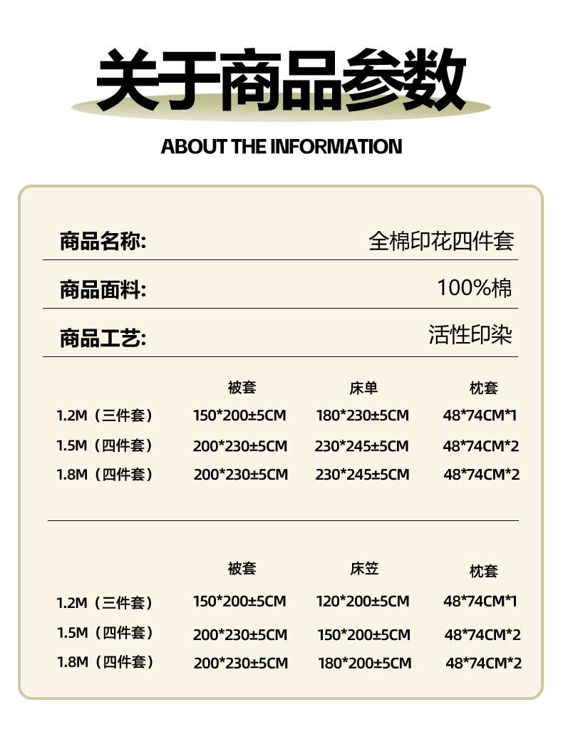 【床笠款】1.5四件套-被套200x230 | ¥120.00 |