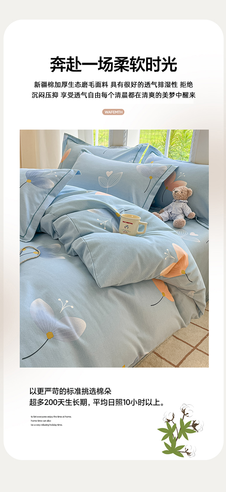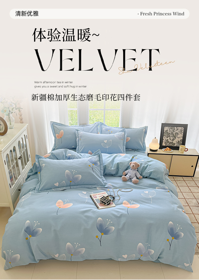 当前位置: 91家纺网 > 商品网购 > 床品套件 > 四件套 > 普通磨毛四件套 > 莱通家纺 2025新款新疆棉加厚生态磨毛印花四件套 之禾