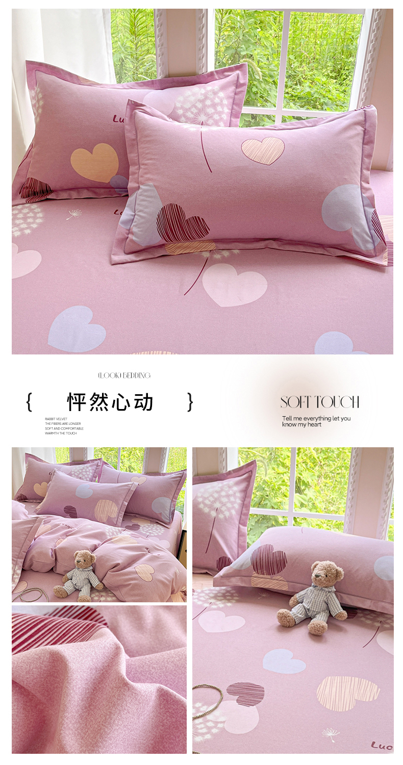 莱通家纺 2025新款新疆棉加厚生态磨毛印花单枕套 怦然心动