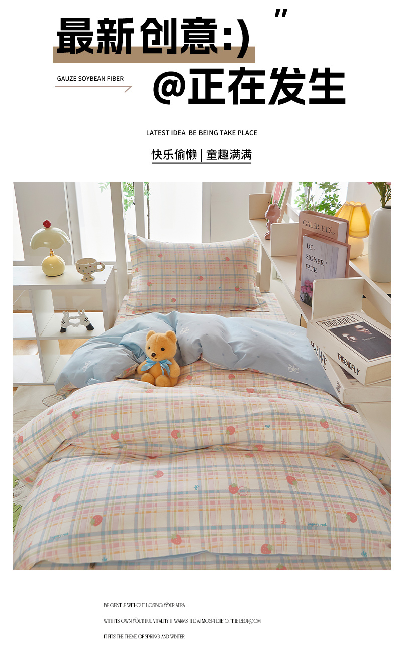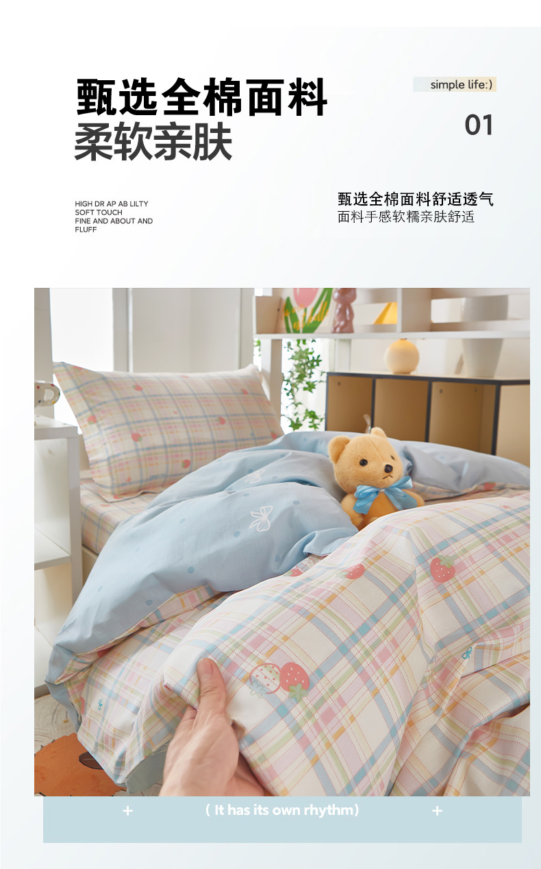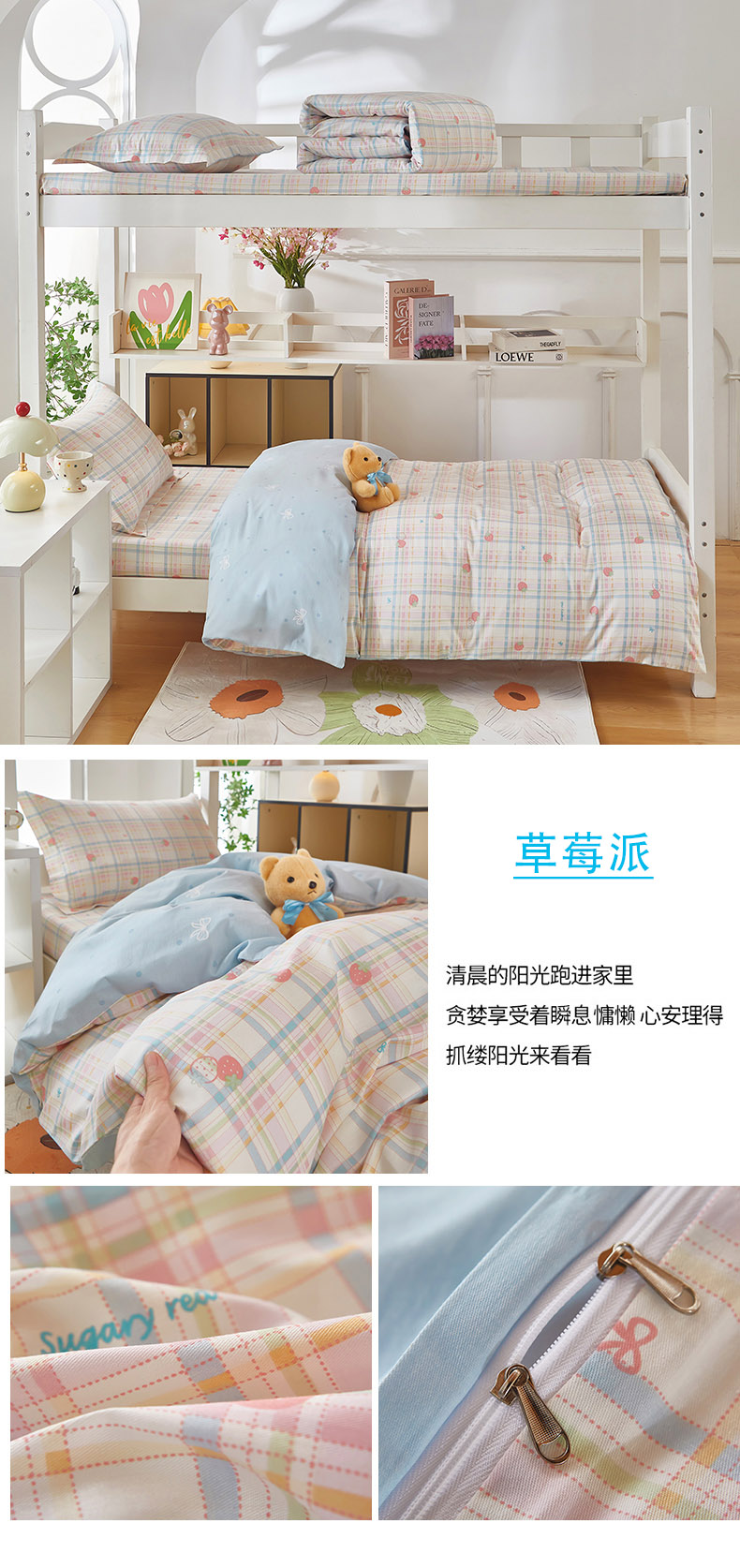 商品名称:安逸家纺 2024新款全棉学生三件套纯棉学生宿舍三件套 草莓派