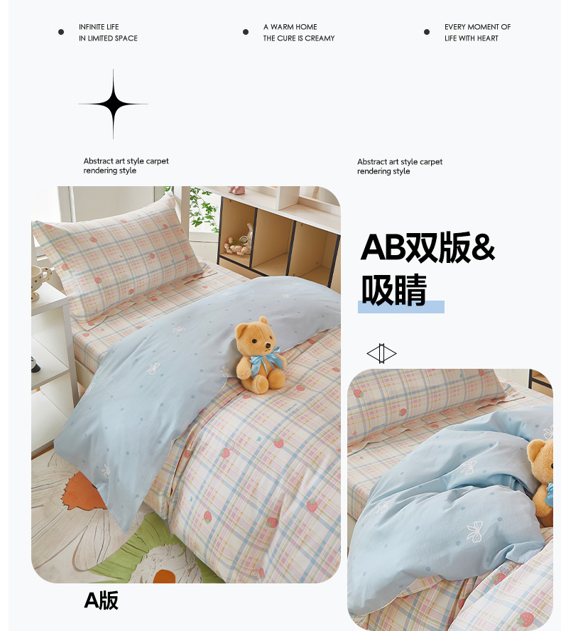 安逸家纺 2024新款全棉学生三件套纯棉学生宿舍三件套 草莓派