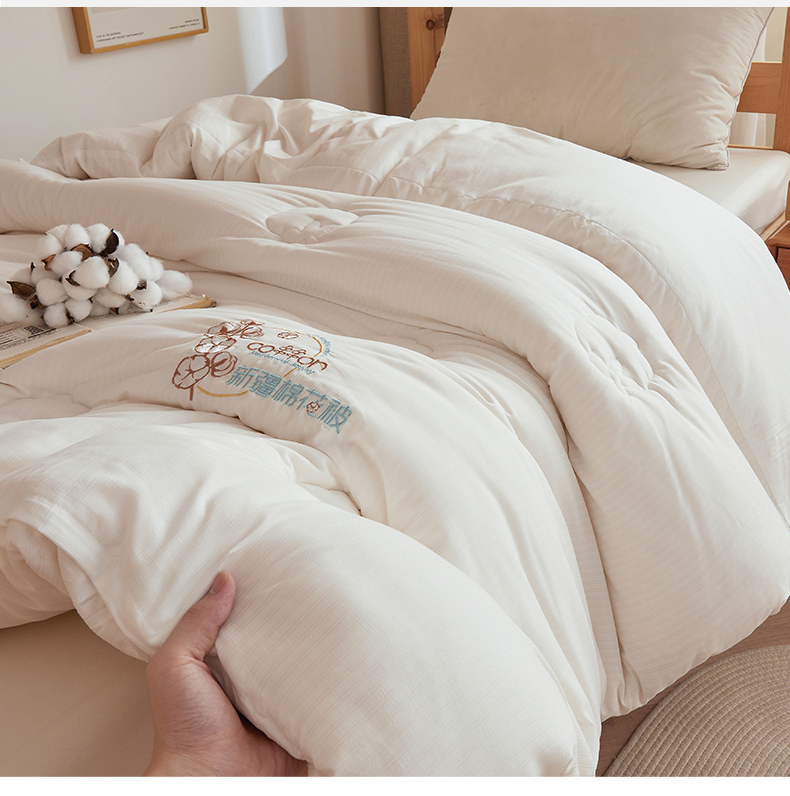 • 91家纺网 家纺一手货源 找家纺 (总)西域种棉人·千百笠 2025新款A类学生款填充100%棉新疆棉花被子毛巾绣贴布绣冬被棉被全棉冬季加厚保暖纯棉花被芯 ,梦屿白,梦屿灰
