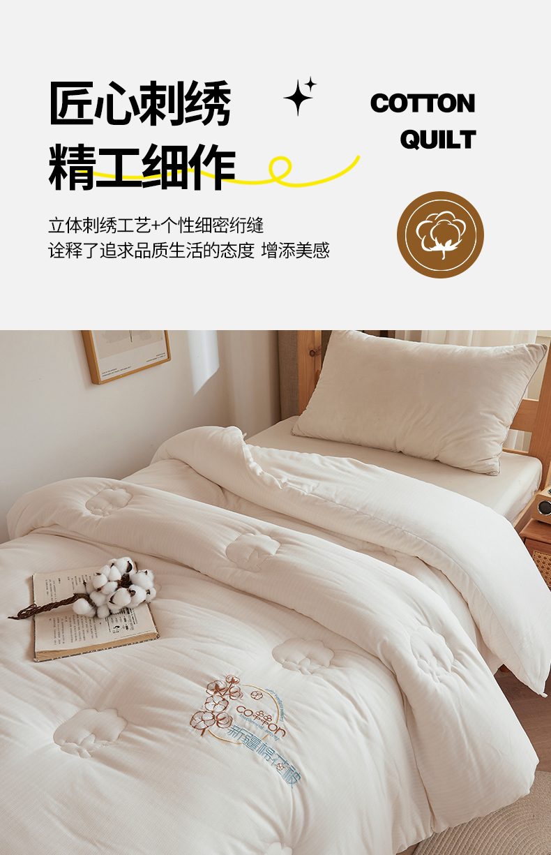 (总)西域种棉人·千百笠 2025新款A类学生款填充100%棉新疆棉花被子毛巾绣贴布绣冬被棉被全棉冬季加厚保暖纯棉花被芯 91家纺网 家纺一手货源 找家纺 (总)2025新款A类学生款填充100%棉,风铃白,风铃灰
