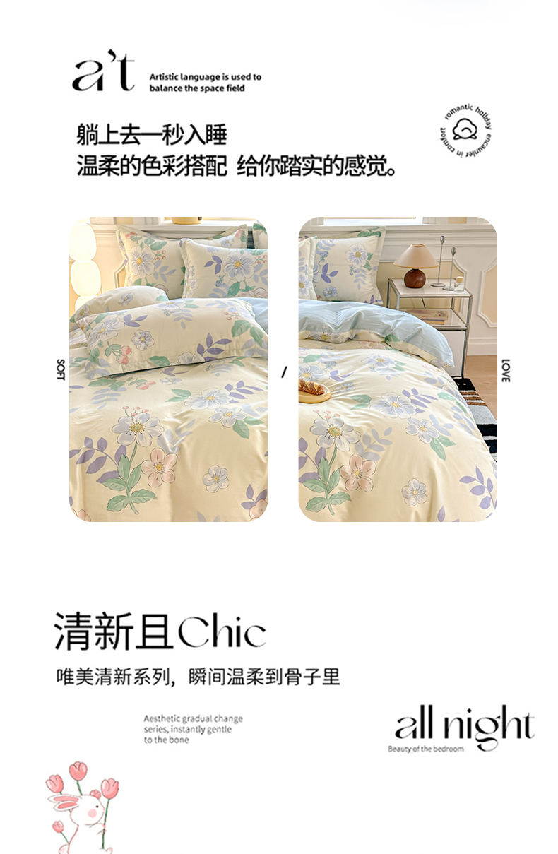 当前位置: 91家纺网 > 商品网购 > 床品套件 > 四件套 > 全棉普通四件套 > 帛织澜 12868全棉喷气印花四件套 花漾星辰