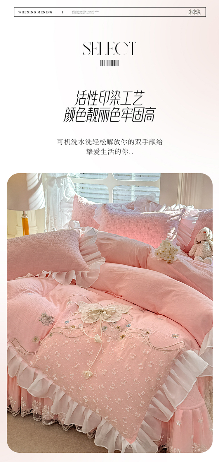漫布云家纺2025春夏新品韩版甜美公主风超柔水洗棉床盖四件套刺绣针织棉双层纱纯棉棉麻全棉少女心夹棉床裙款夏被款床盖四件套 幻蝶-樱花粉