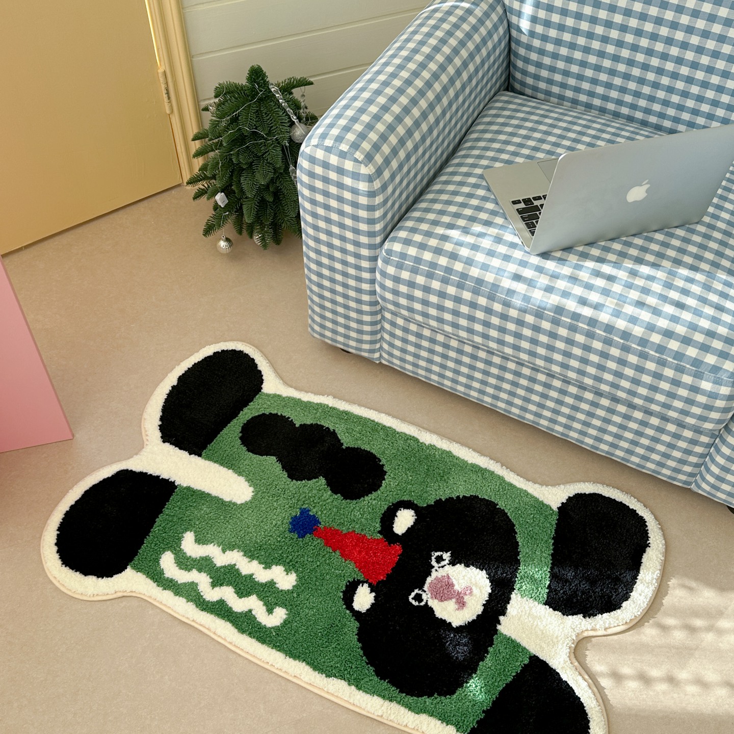 觅糖家纺 2025新款云感卡通风治愈系地垫 紫色苹果狗