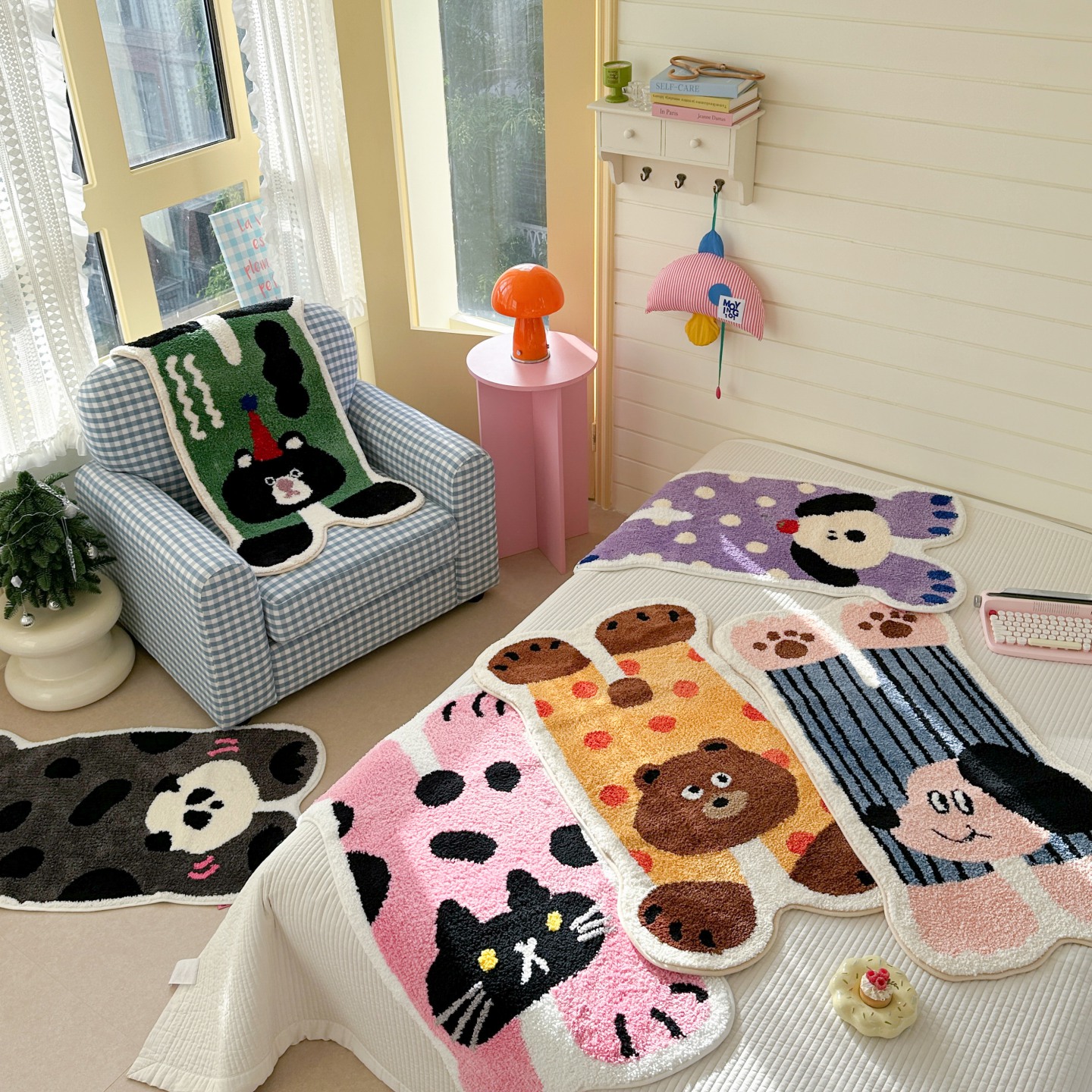 (总)觅糖 2024新款满版卡通牛奶绒套件,Good 猫柠,糯米团,起司棕熊,兔泡泡,雪饼小狗,椰椰龙崽