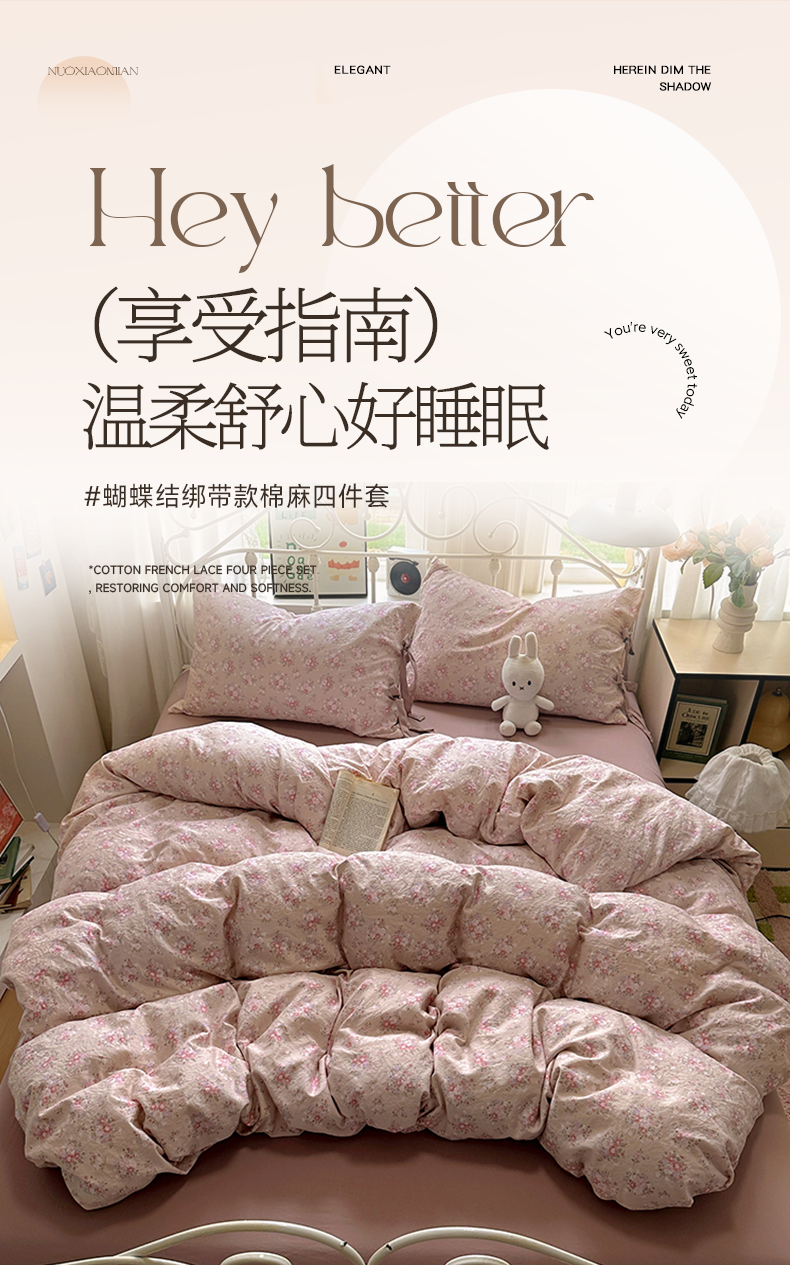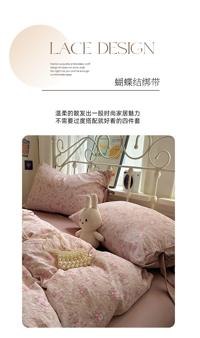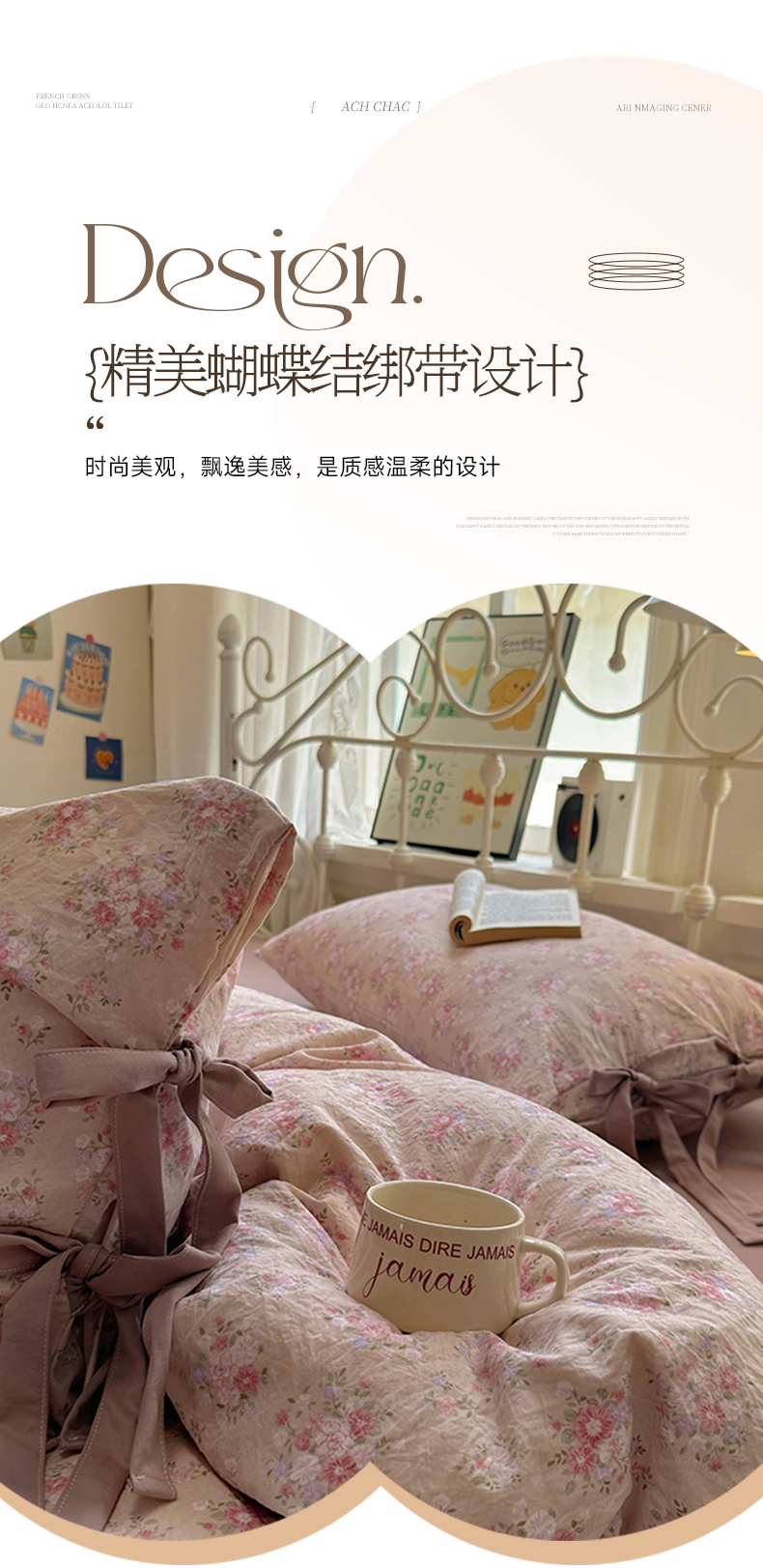 商品名称:漫仙阁家纺2025新款蝴蝶结绑带款四件套-碎花系列 花语