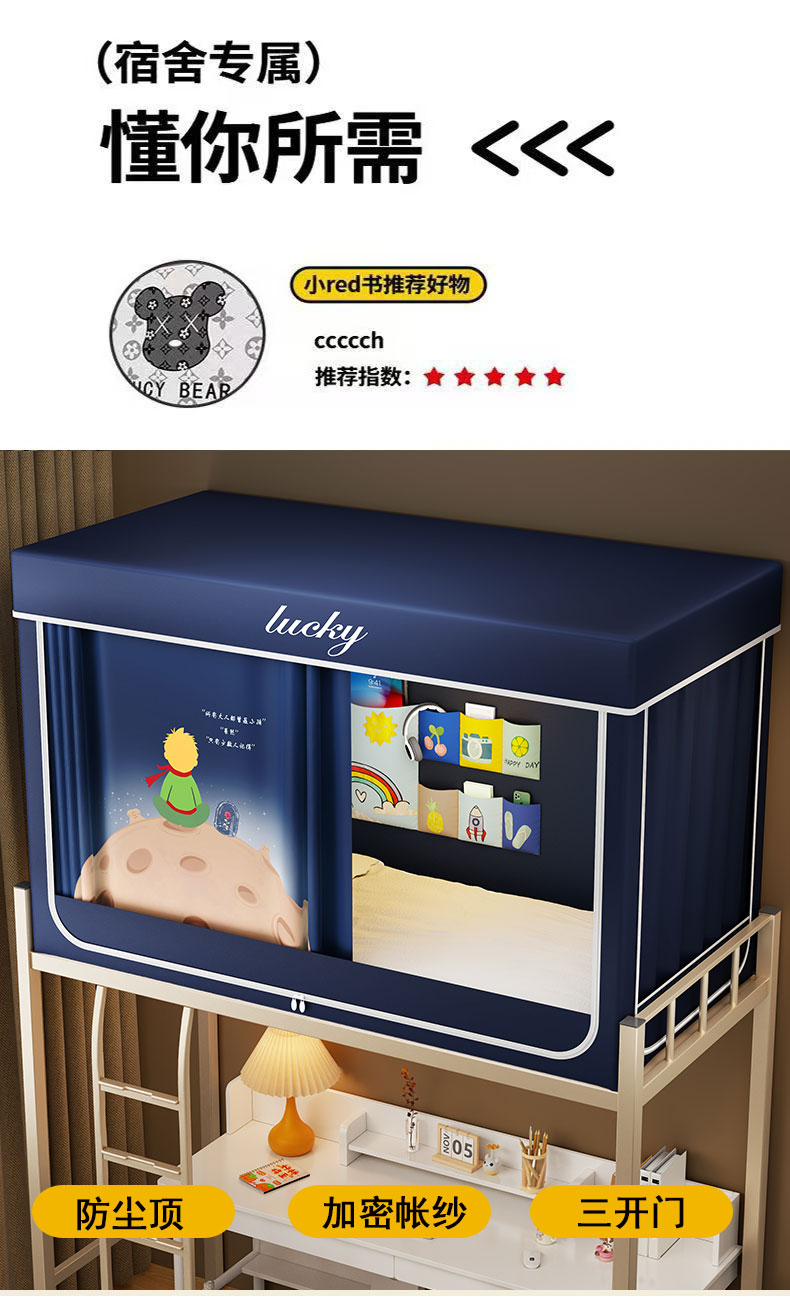 (总)宜品雅 2025新款学生款宿舍遮光蚊帐,藏蓝色,淡雅灰,米色,深空灰,天空蓝,樱花粉