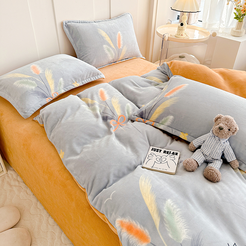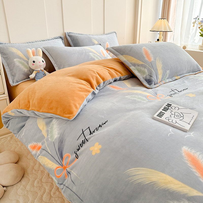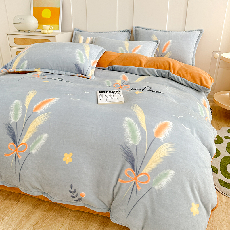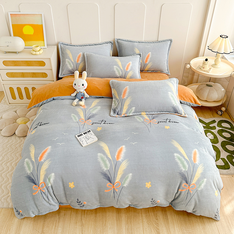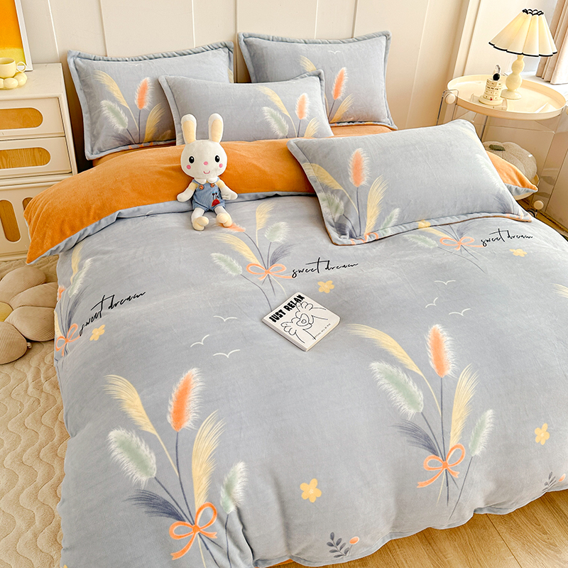 当前位置: 91家纺网 > 商品网购 > 床品套件 > 四件套 > 牛奶绒四件套 > 家贝爱 2025新款A类牛奶绒印花四件套 情人草-灰