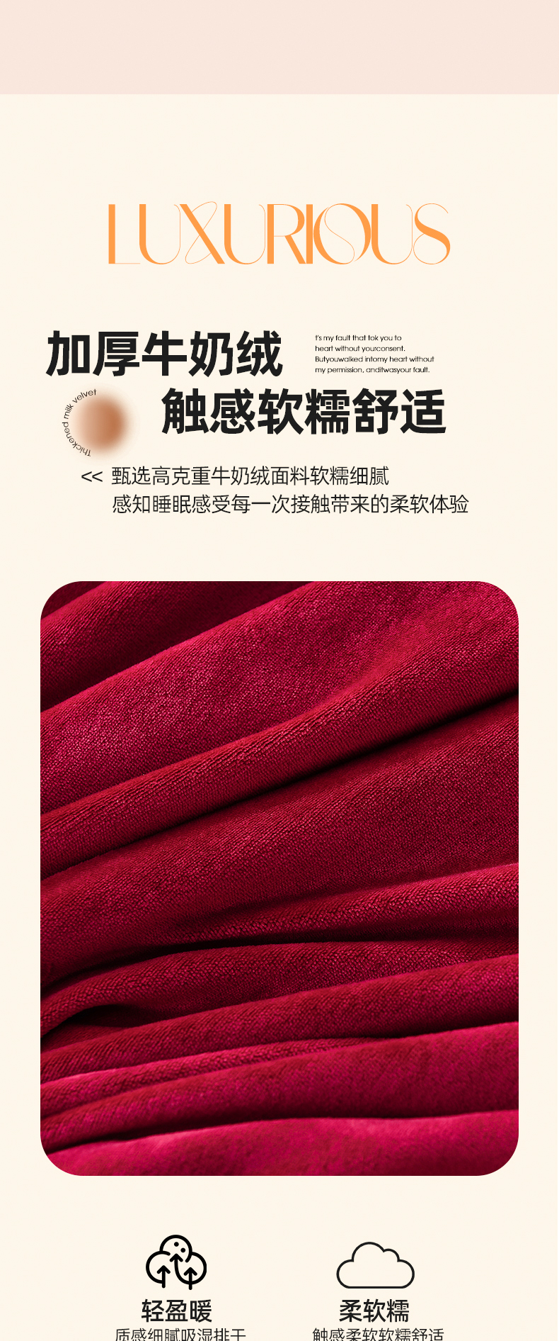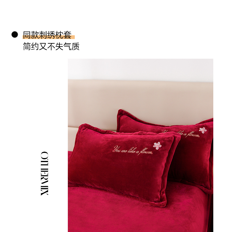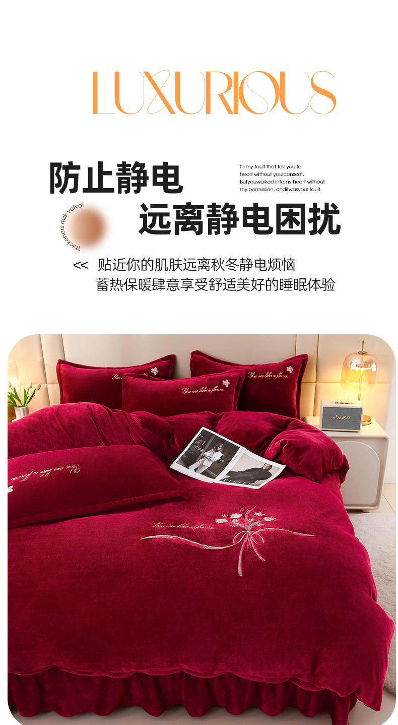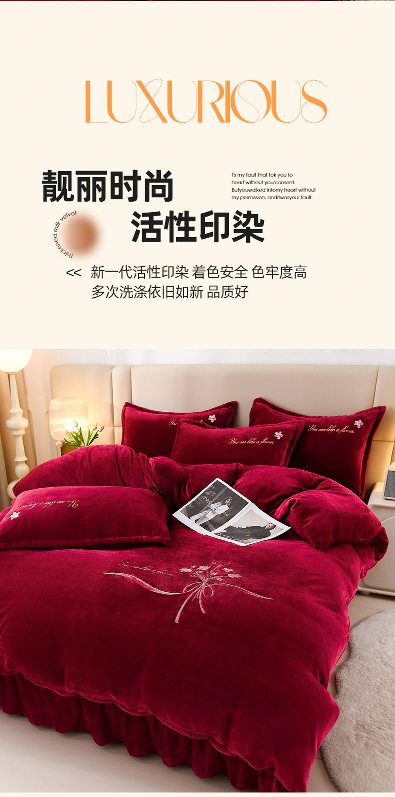 绣女坊 2025新款高克重牛奶绒刺绣四件套 郁金香-酒红