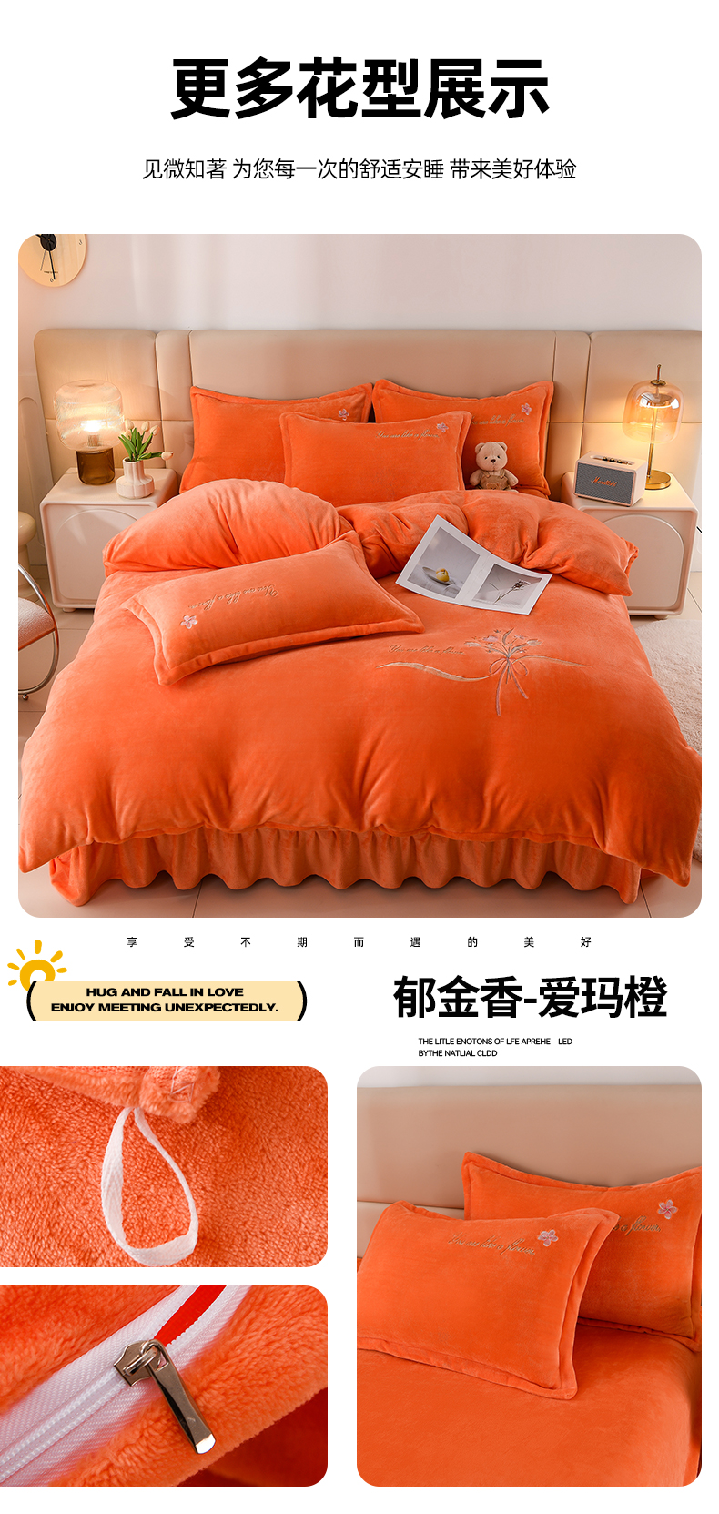 (总)绣女坊 2025新款高克重牛奶绒刺绣四件套,郁金香-爱玛橙,郁金香-豆沙,郁金香-灰,郁金香-酒红,郁金香-孔雀蓝,郁金香-玫粉,郁金香-嫩绿,郁金香-天蓝,郁金香-香芋紫