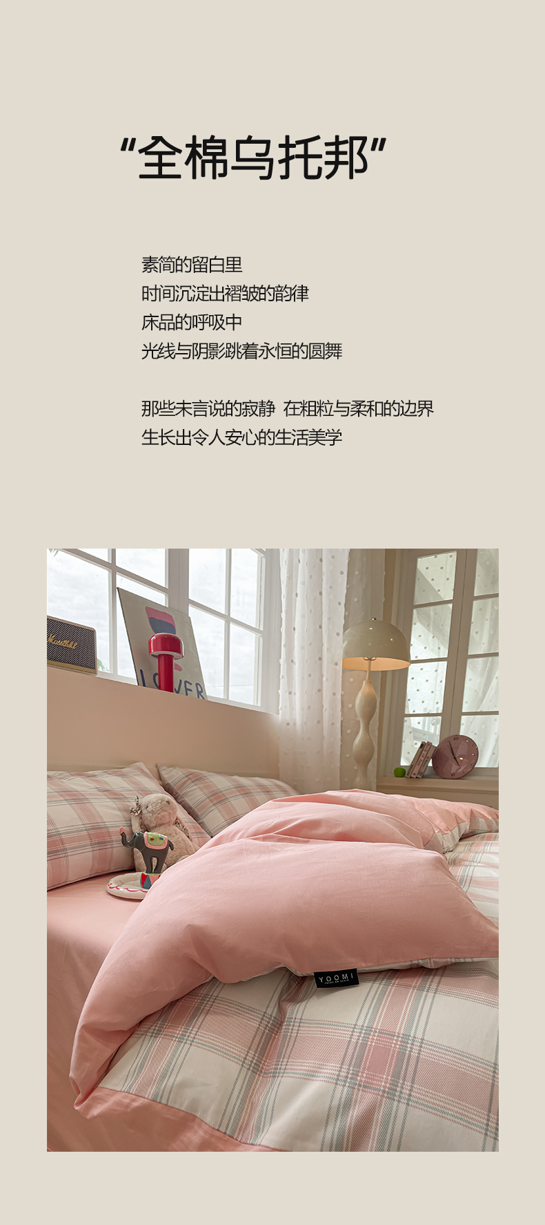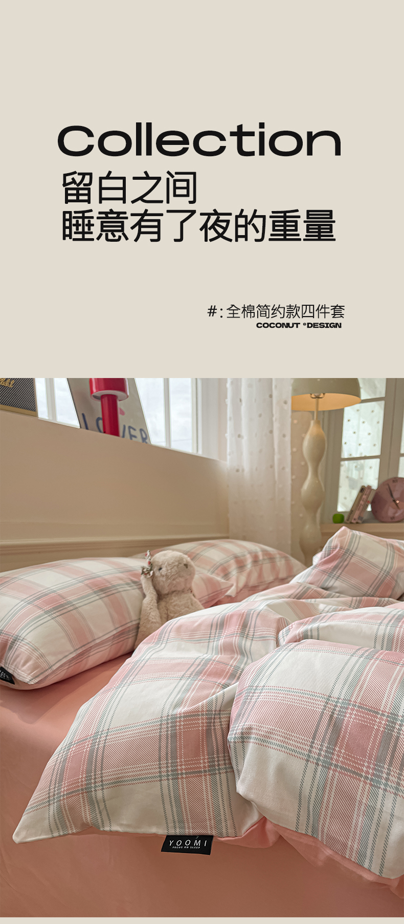 当前位置: 91家纺网 > 商品网购 > 床品套件 > 四件套 > 全棉普通四件套 > 涵宸家纺 2025新款全棉简约款四件套 莫妮粉