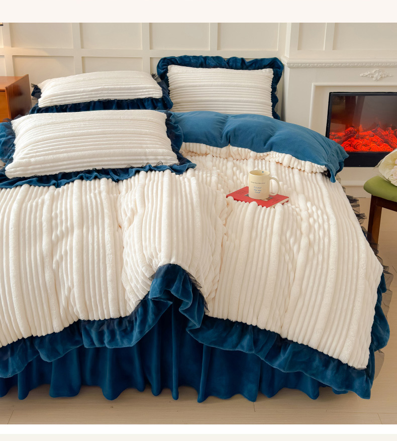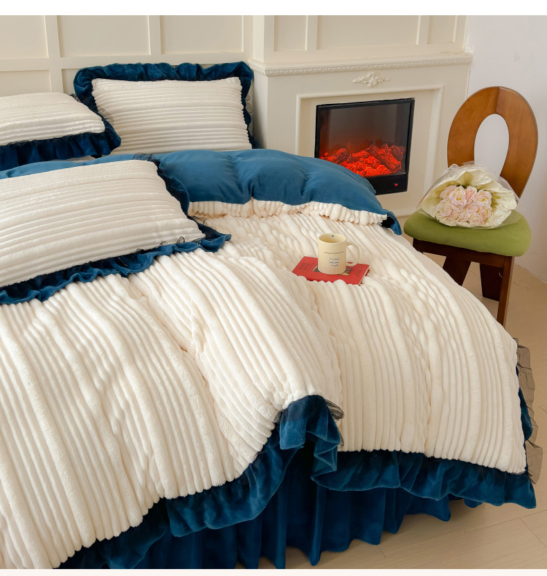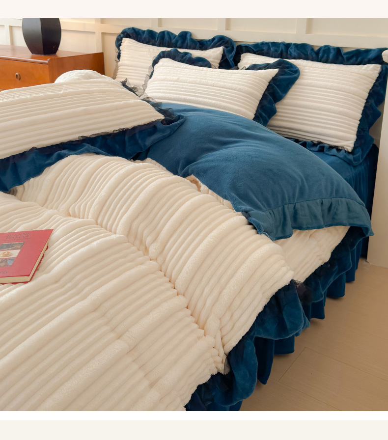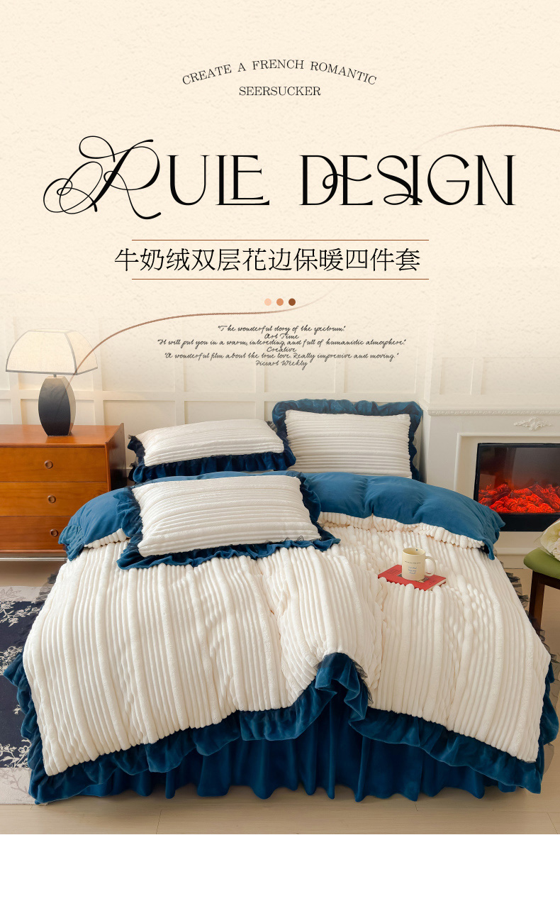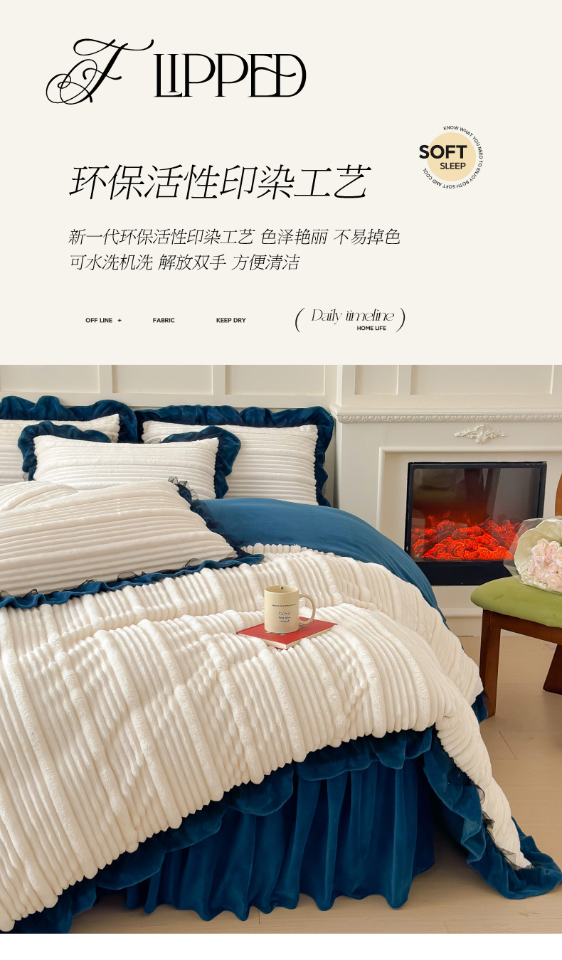 当前位置: 91家纺网 > 商品网购 > 床品套件 > 四件套 > 牛奶绒四件套 > 睡美人 2025新款牛奶绒韩版四件套子母条双边床裙床单款 子母条-孔雀绿