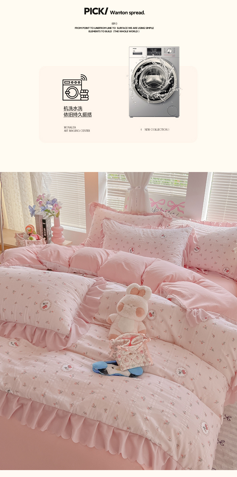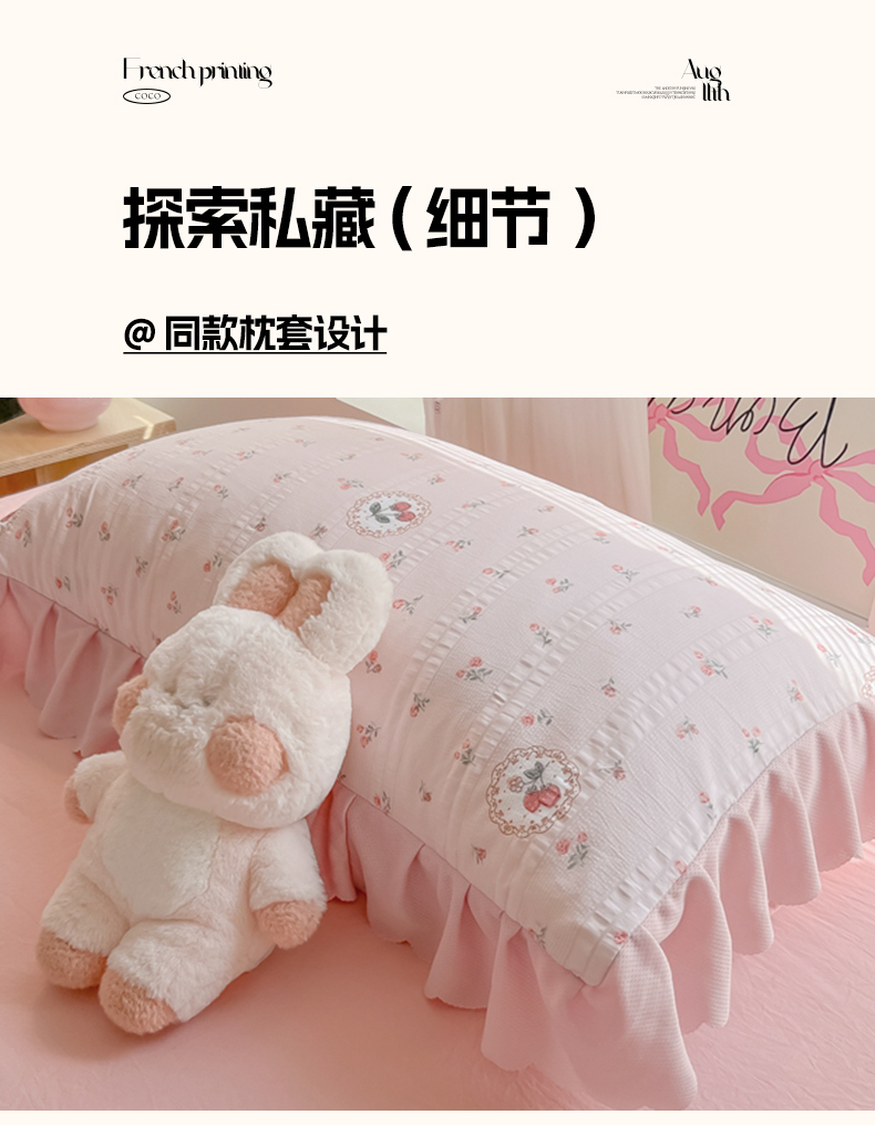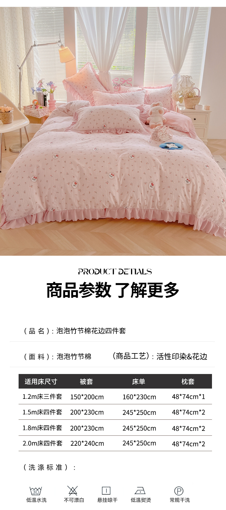 商品名称:(总)(含买家秀)2025年新款开学季泡泡棉小竹棉四件套韩系少女风花边款床单被套学生三件套床品套件