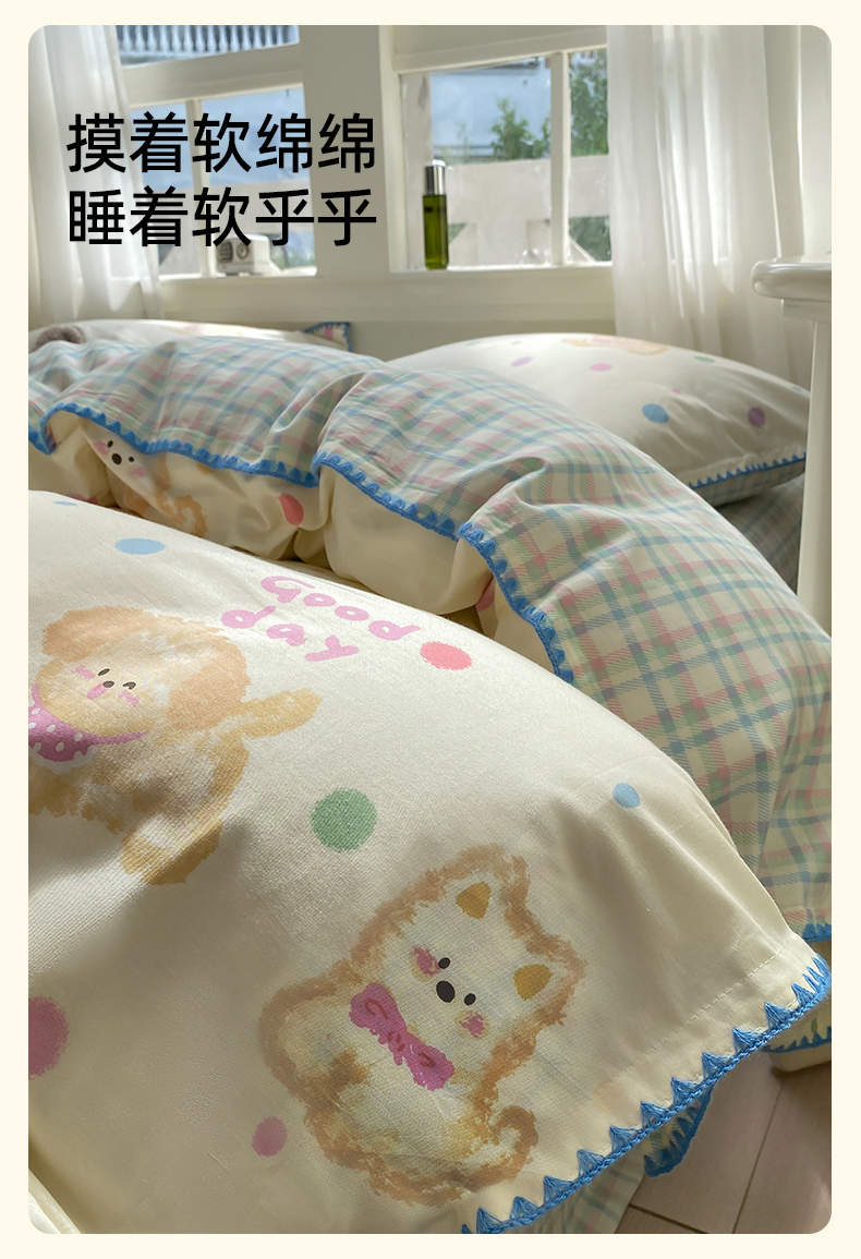 当前位置: 91家纺网 > 商品网购 > 床品套件 > 四件套 > 全棉普通四件套 > 浮光家居 2025新款全棉纯棉贝壳边四件套 假日小狗