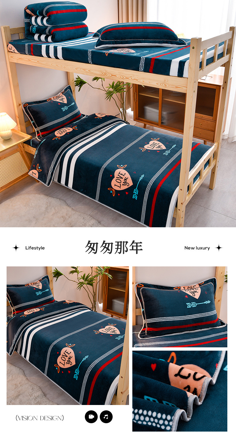(总)牵梦萦 2025新款牛奶绒学生三件套,幸运猫咪,夏兰,菲菲兔,匆匆那年,爱情条码,斑马,宝蓝,宾利蓝,等待,豆沙,欢乐时光,黄色,吉米粉,简单爱,酒红,桔色,咖啡,蓝大格,鹿之恋,牛油果绿,浅灰,天蓝,驼色,玉色,郁金香,紫色,晚安鹿