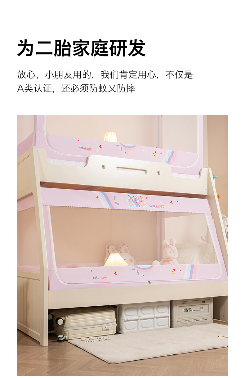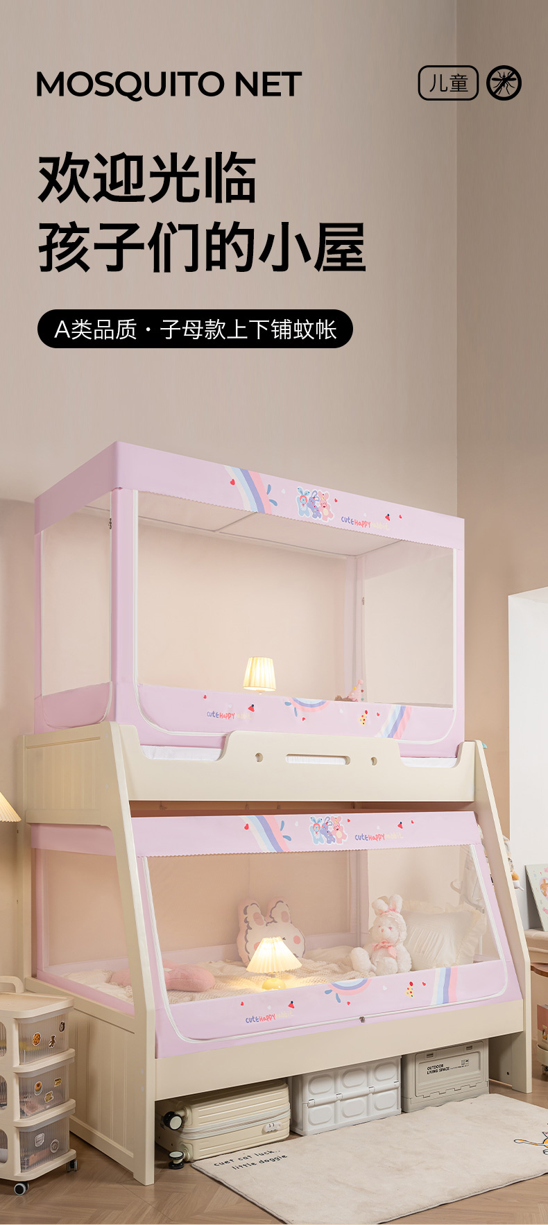 • 91家纺网 家纺一手货源 找家纺 新太阳蚊帐 2025新款A类子母款上下铺蚊帐 三只小兔