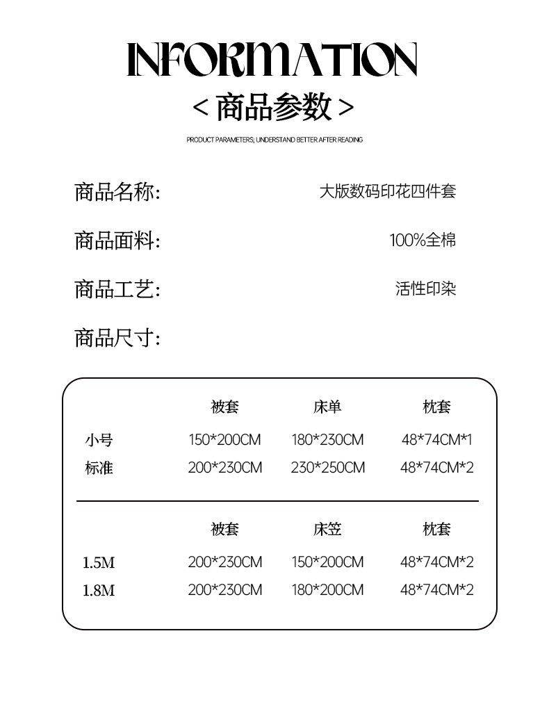 【床笠款】1.5四件套-被套200x230 | ¥130.00 |