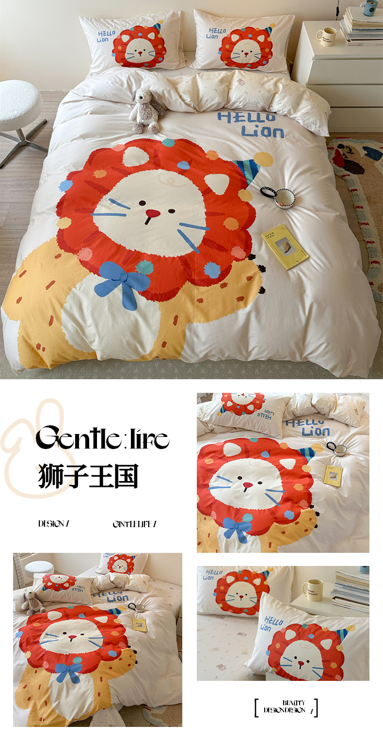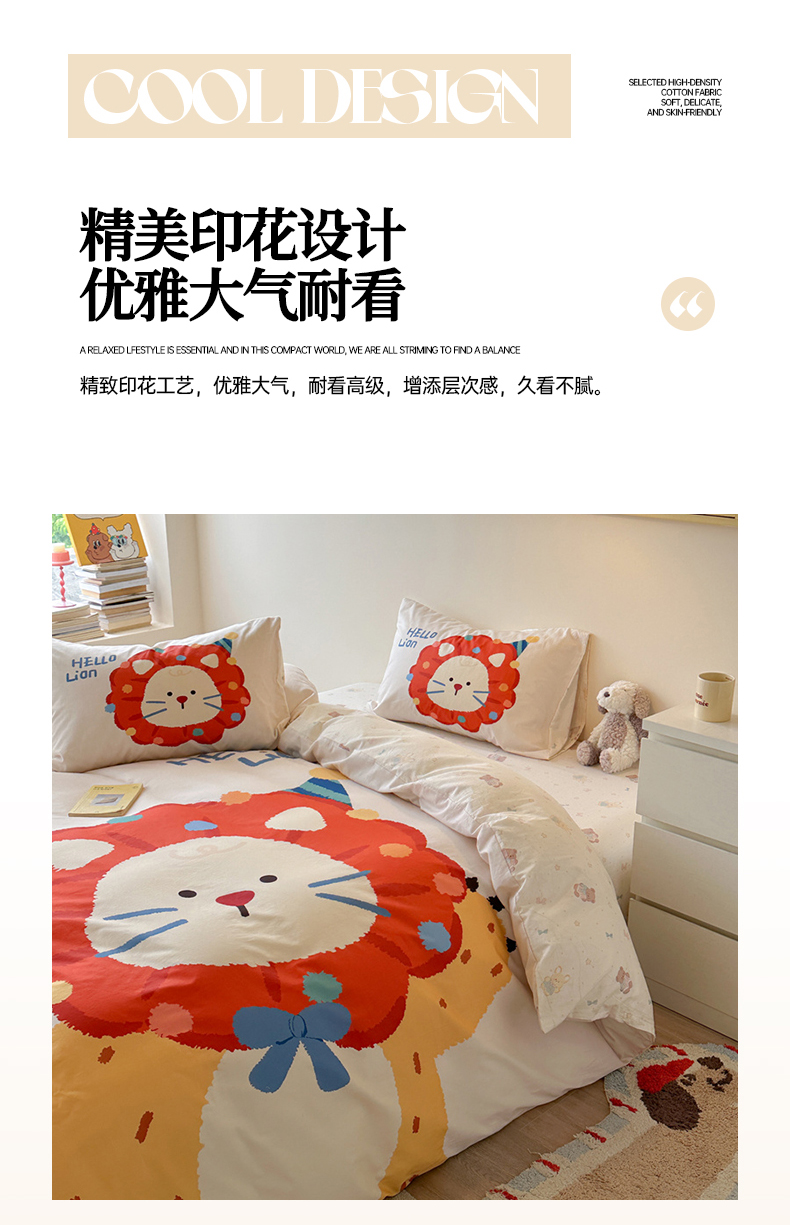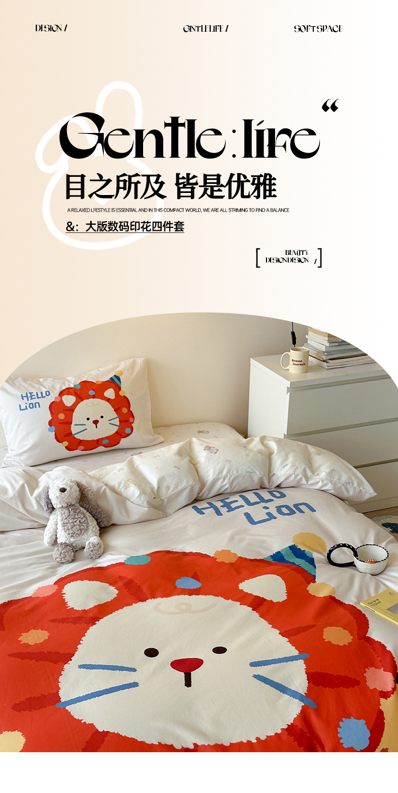 当前位置: 91家纺网 > 商品网购 > 床品套件 > 四件套 > 全棉普通四件套 > 寐居家纺 2025新款亲肤舒适全棉纯棉数码大阪印花四件套 狮子王国