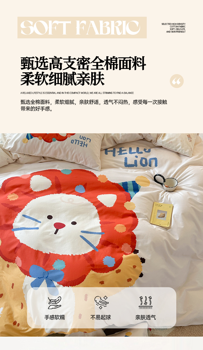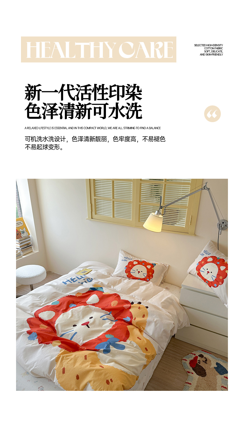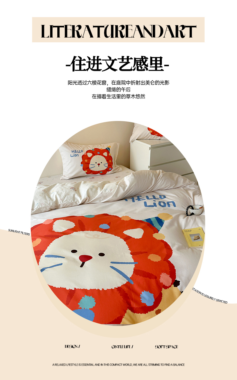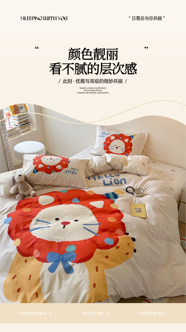 当前位置: 91家纺网 > 商品网购 > 床品套件 > 四件套 > 全棉普通四件套 > 寐居家纺 2025新款亲肤舒适全棉纯棉数码大阪印花四件套 狮子王国