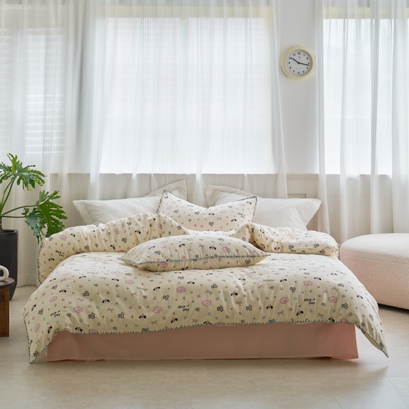 当前位置: 91家纺网 > 商品网购 > 床品套件 > 四件套 > 全棉普通四件套 > 洋铭区(原狠狠爱) 2025新款全棉纯棉双层纱彩边四件套 芭蕾兔