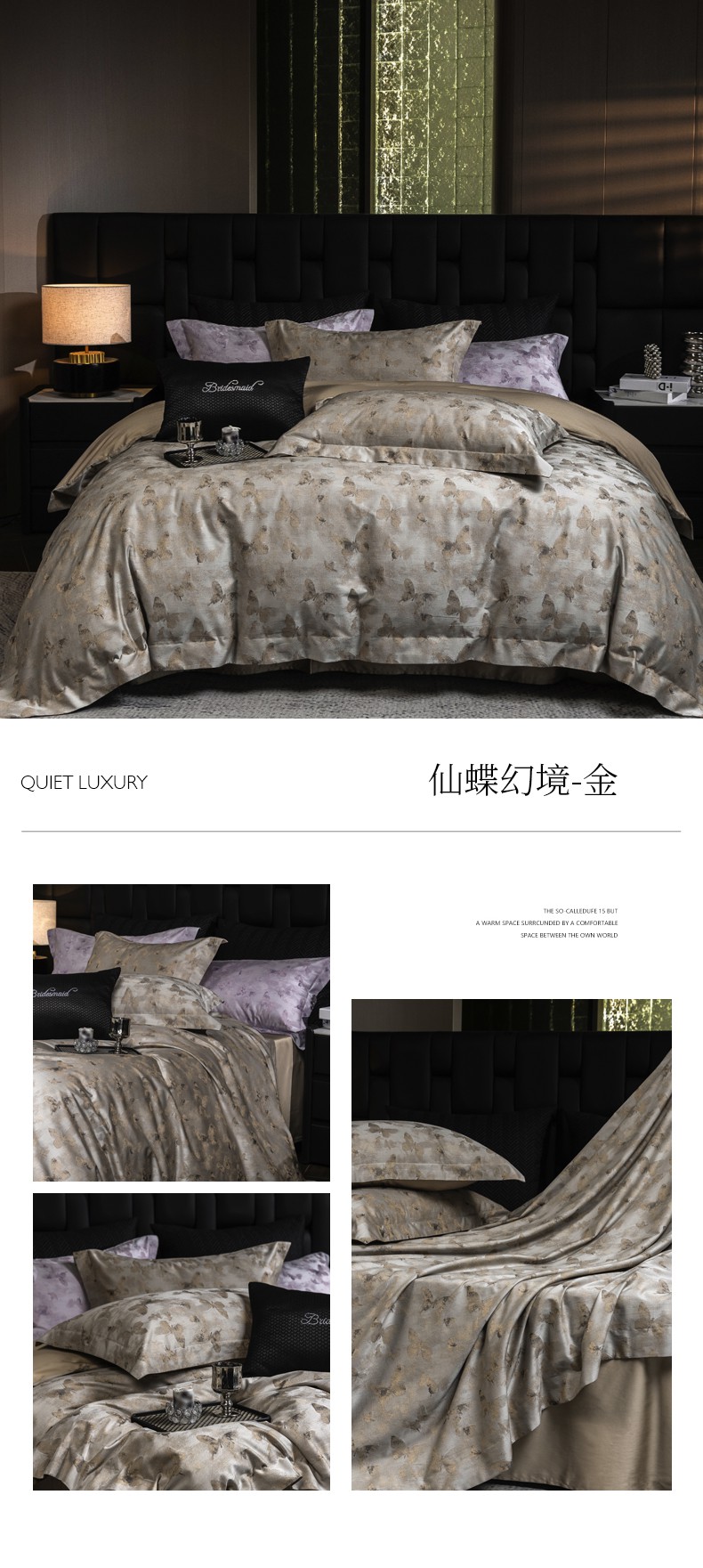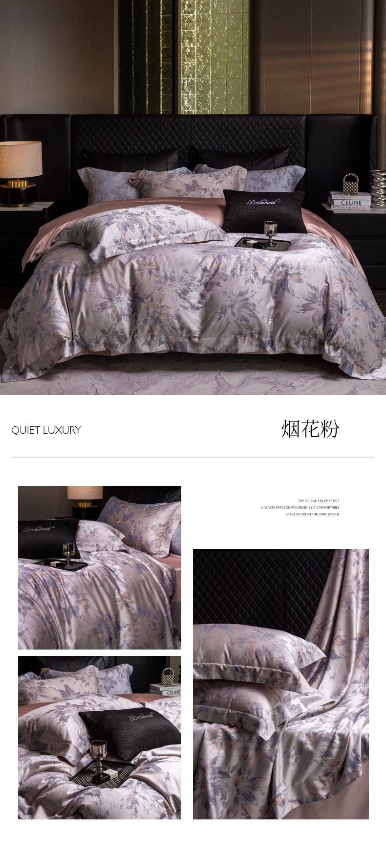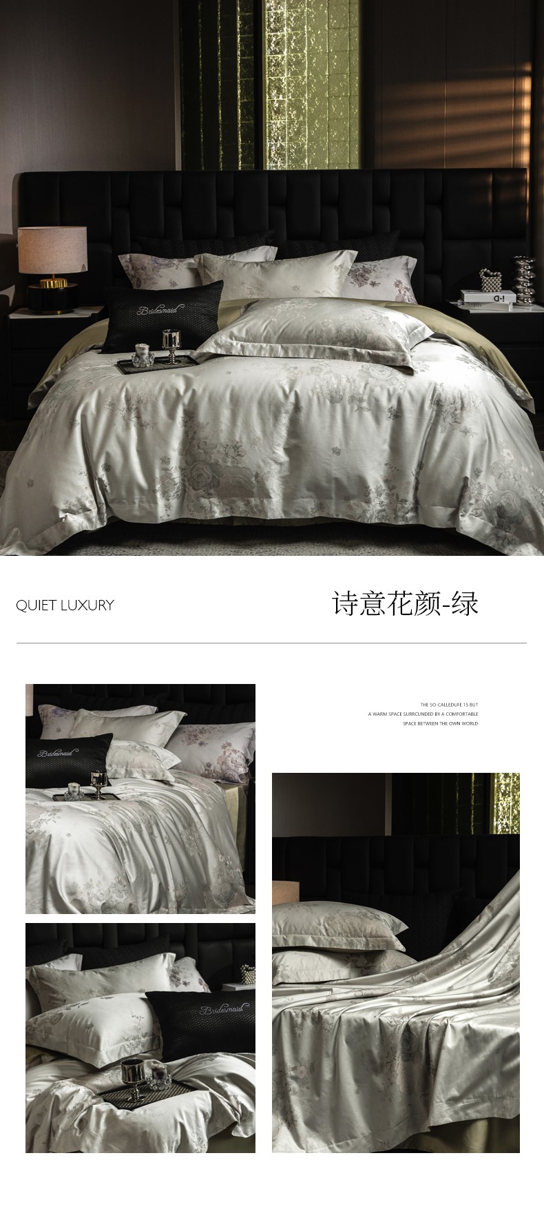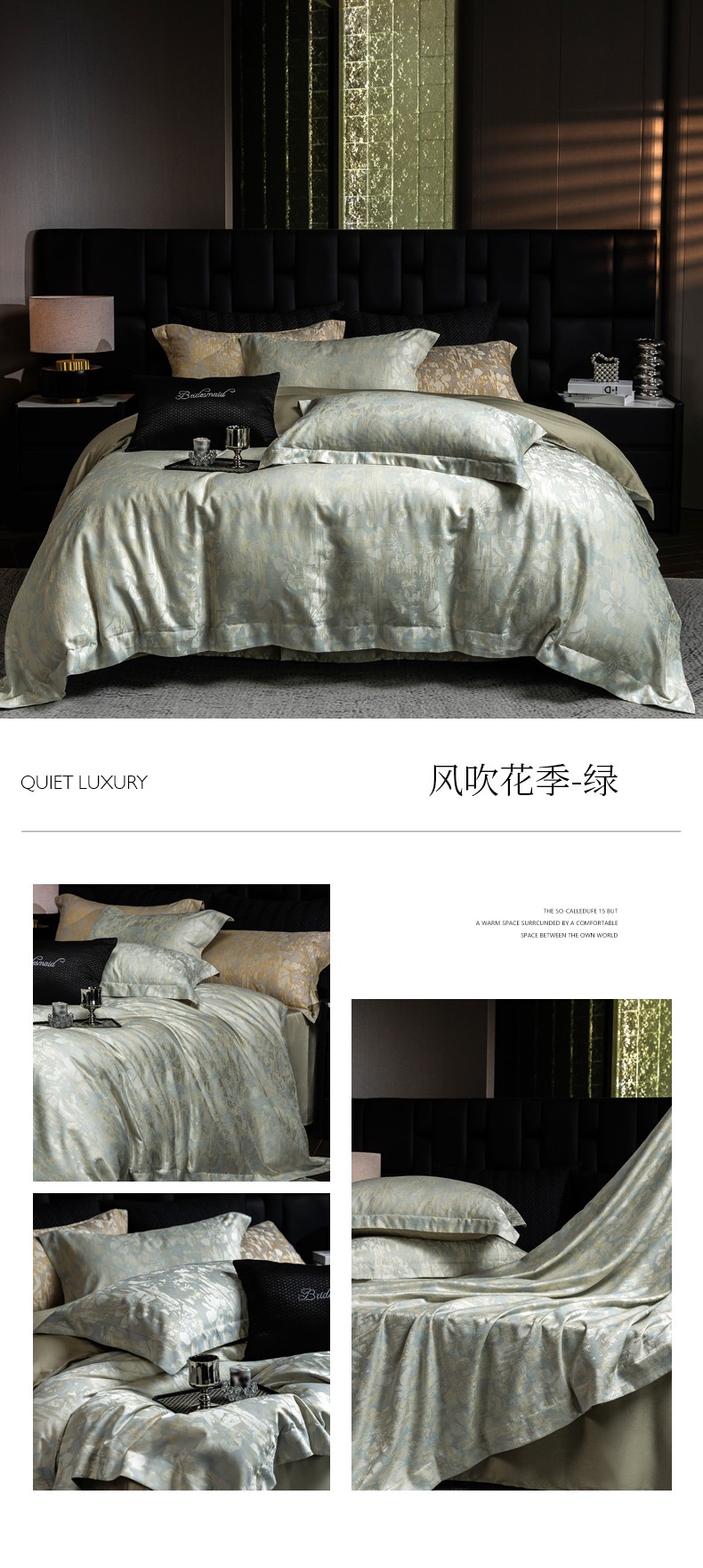(总)立奥被业 2025新款60支全棉贡缎提花四件套,芊芊紫,豹富绿,豹纹灰,豹纹绿,米罗橙,米罗兰,飘渺灰,飘渺紫,嫣然粉,嫣然金,暗香粉,风车,渐渐,梦然蝶舞,曲曲,悠悠花语