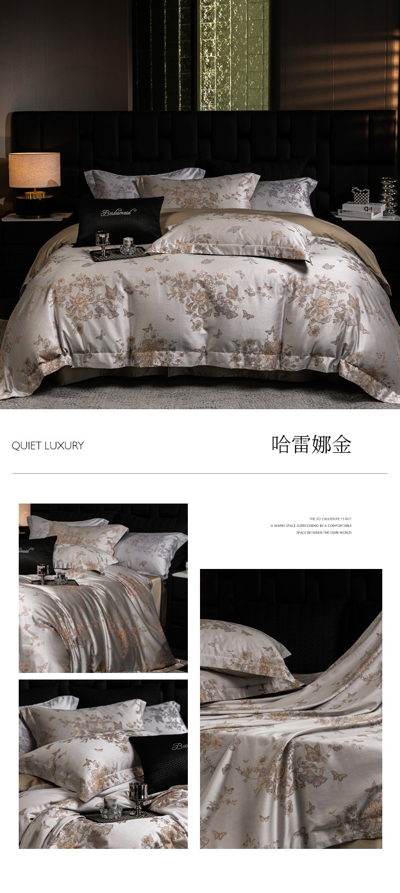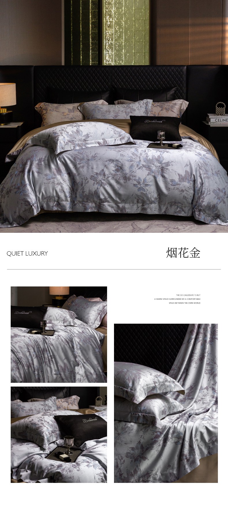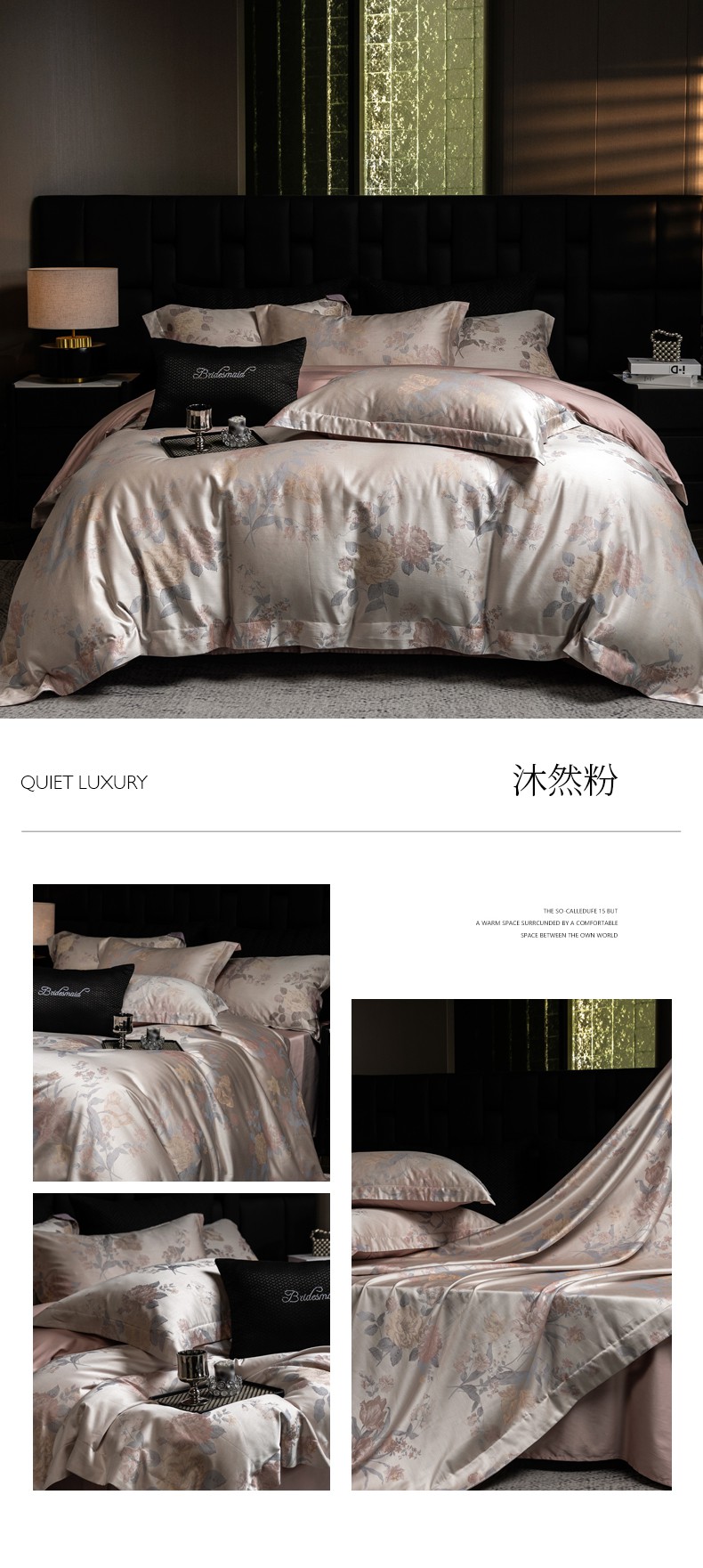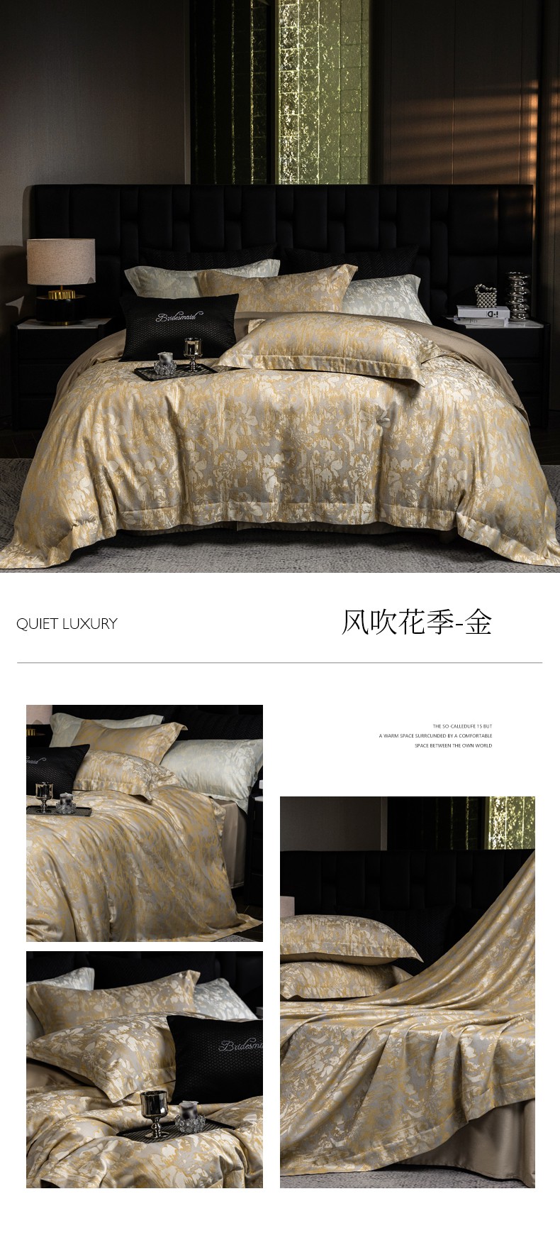 (总)立奥被业 2025新款60支全棉贡缎提花四件套,芊芊紫,豹富绿,豹纹灰,豹纹绿,米罗橙,米罗兰,飘渺灰,飘渺紫,嫣然粉,嫣然金,暗香粉,风车,渐渐,梦然蝶舞,曲曲,悠悠花语