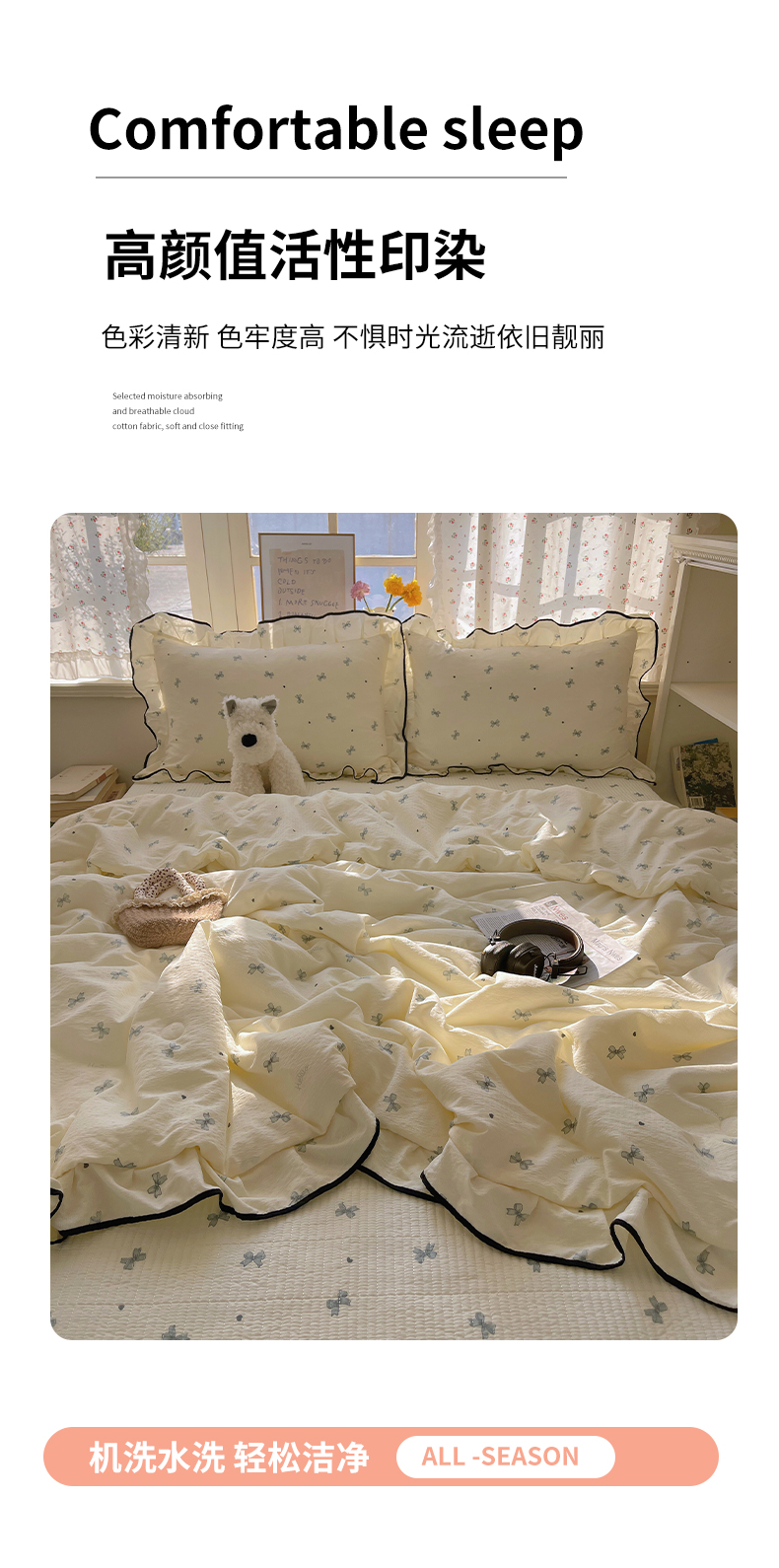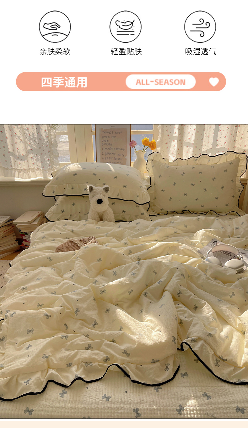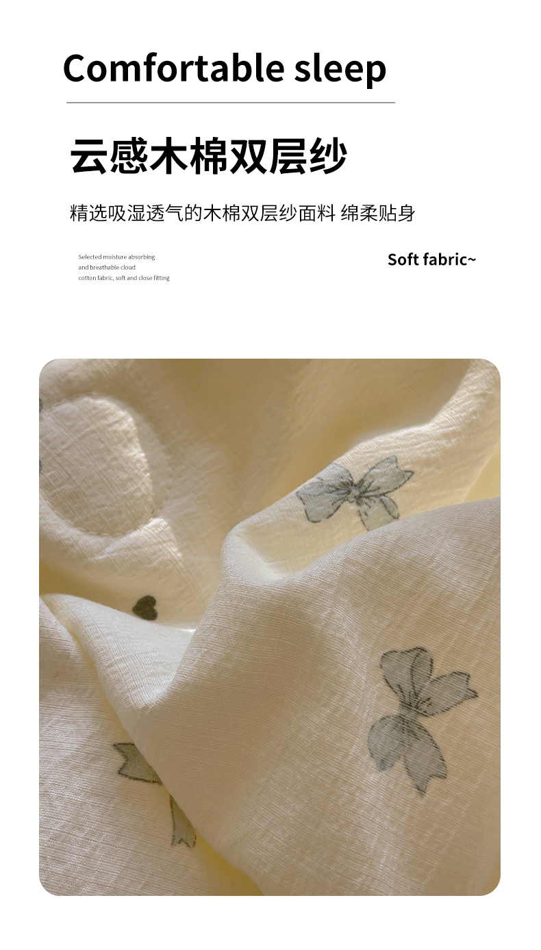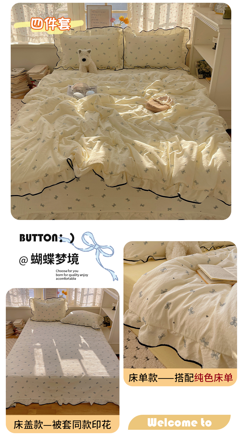 当前位置: 91家纺网 > 商品网购 > 床品套件 > 四件套 > 其它四件套 > 繁花家居 2025新款云感木棉针织棉双层纱床盖四件套 床盖被套款-蝴蝶梦境