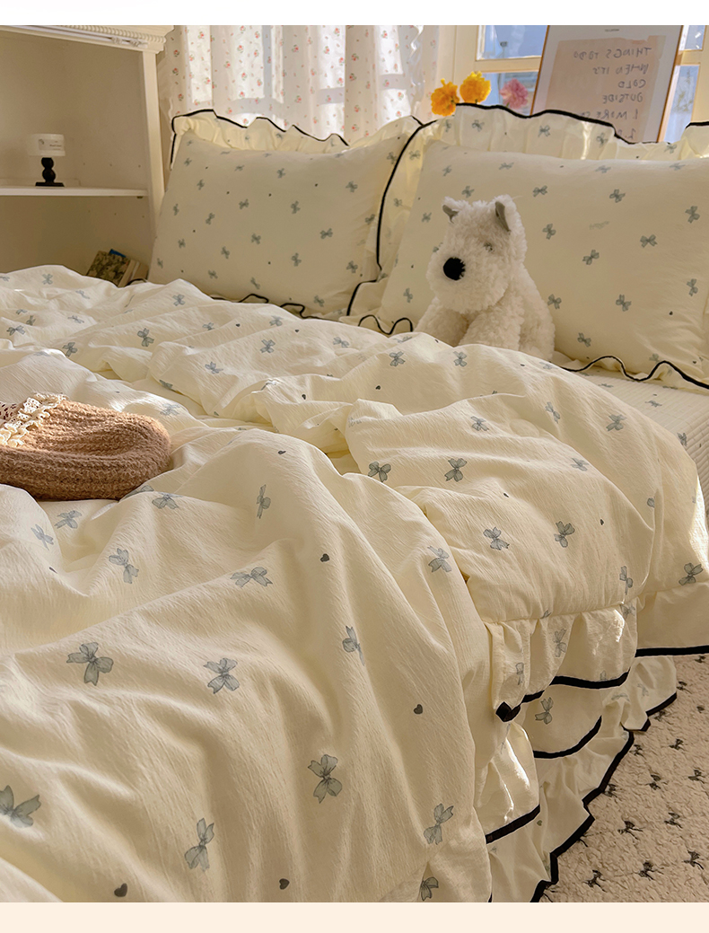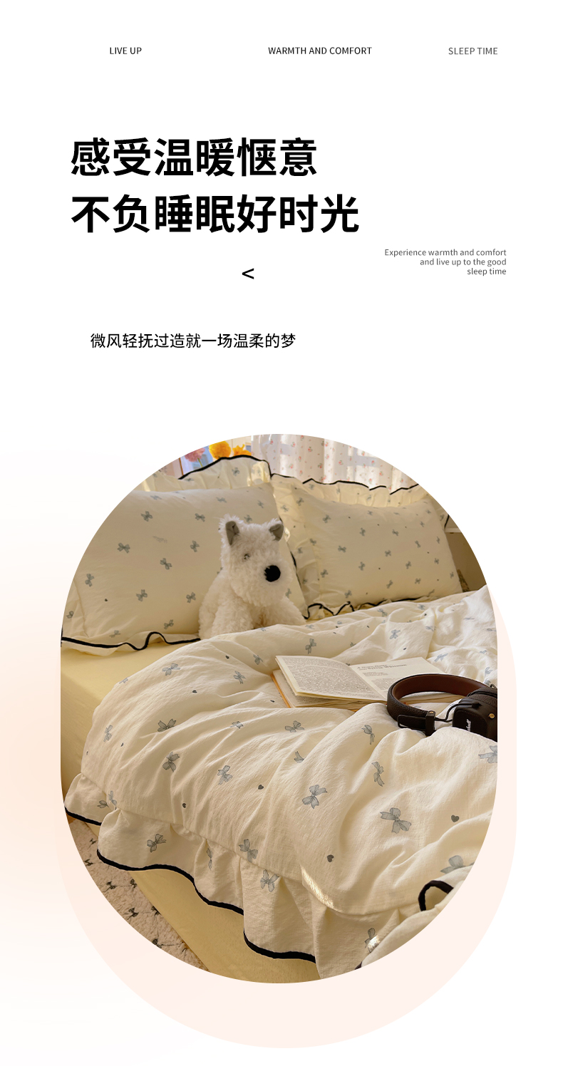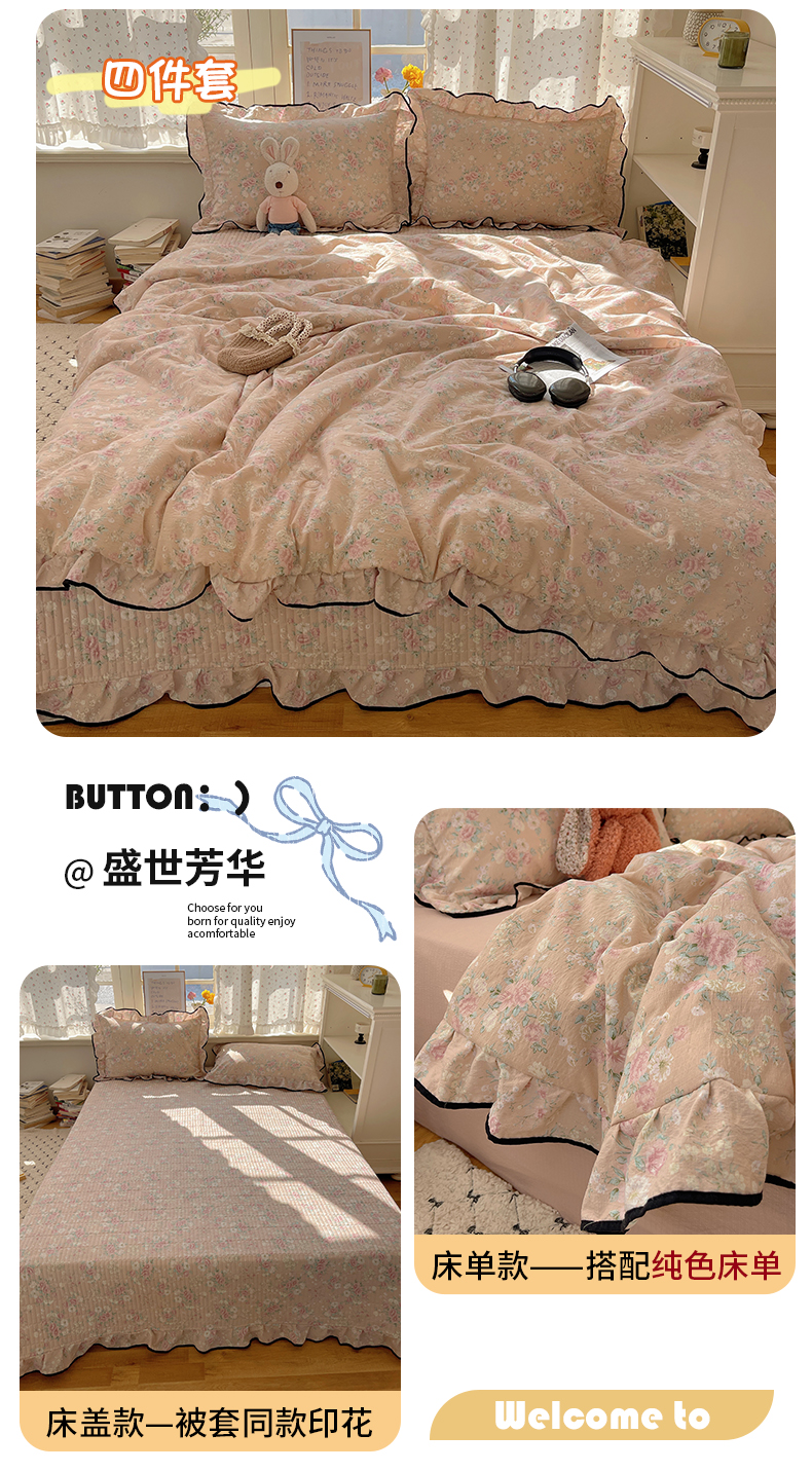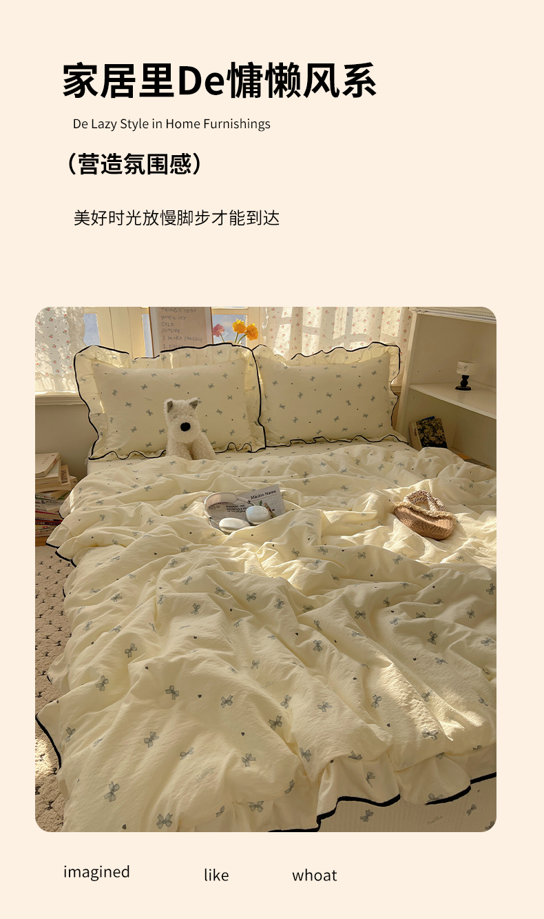 当前位置: 91家纺网 > 商品网购 > 床品套件 > 四件套 > 其它四件套 > 繁花家居 2025新款云感木棉针织棉双层纱床盖四件套 床盖被套款-蝴蝶梦境