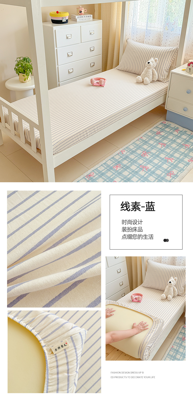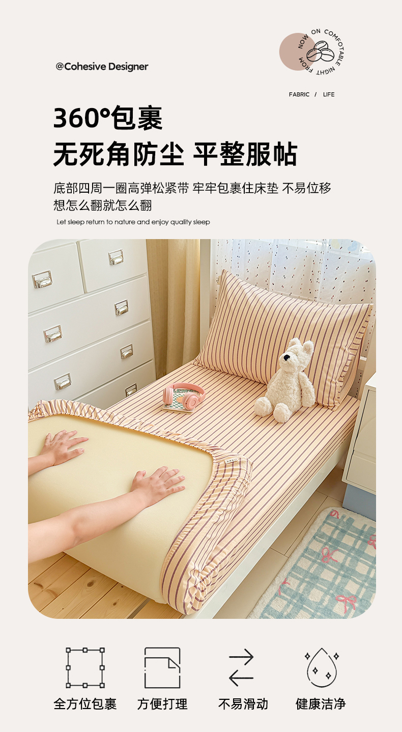 • 91家纺网 家纺一手货源 找家纺 简宜家居(朝初家纺) 2025新款全棉纯棉磨毛加厚A版学生床笠单品床笠单件单床笠-线素系列 线素-浅紫