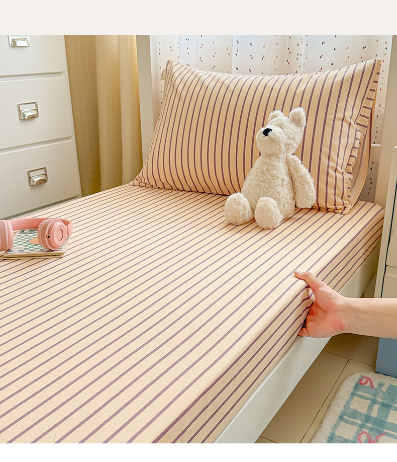简宜家居(朝初家纺) 2025新款全棉纯棉磨毛加厚A版学生床笠单品床笠单件单床笠-线素系列 线素-浅紫
