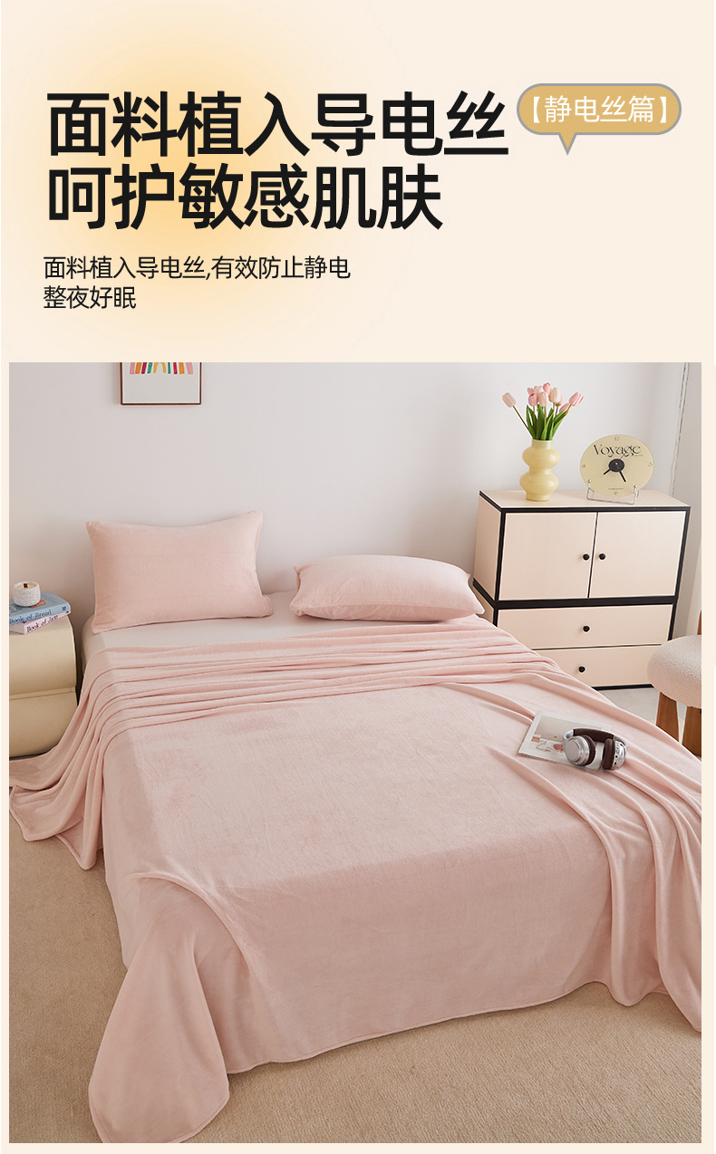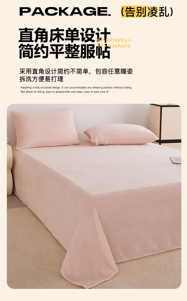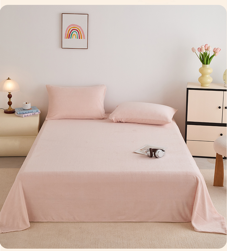 曼町家居 2025新款高克重牛奶绒床单单床单床单单件 蜜桃粉