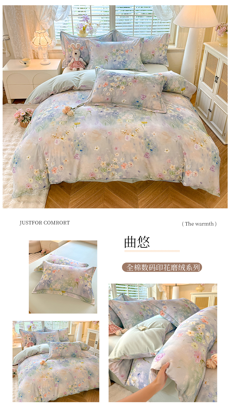 当前位置: 91家纺网 > 商品网购 > 床品套件 > 四件套 > 全棉普通四件套 > 巧玲珑 2025新款100%数码印花生态AB版四件套 曲悠