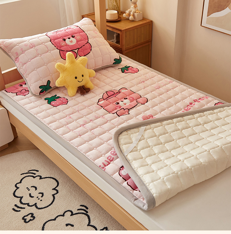 奇丝雅 2025新款A类牛奶绒床褥床垫家用学生宿舍上下铺寝室软垫床护垫夹棉褥子-学生床单件 草莓熊