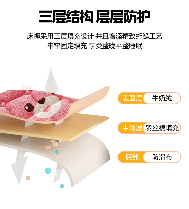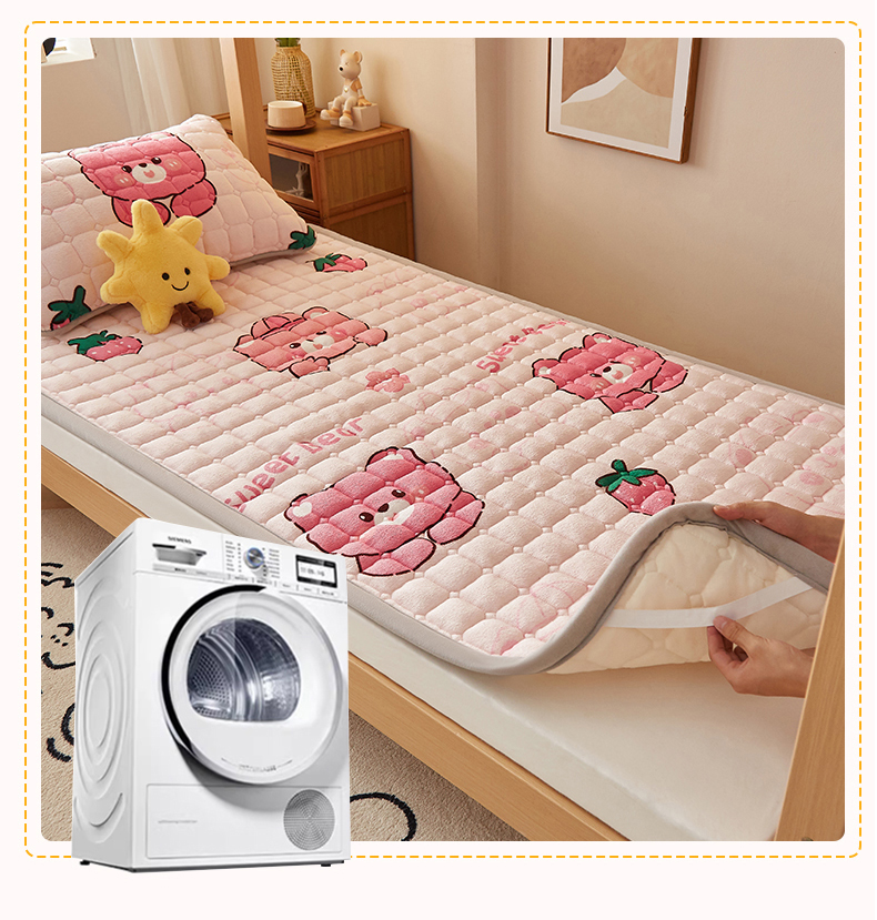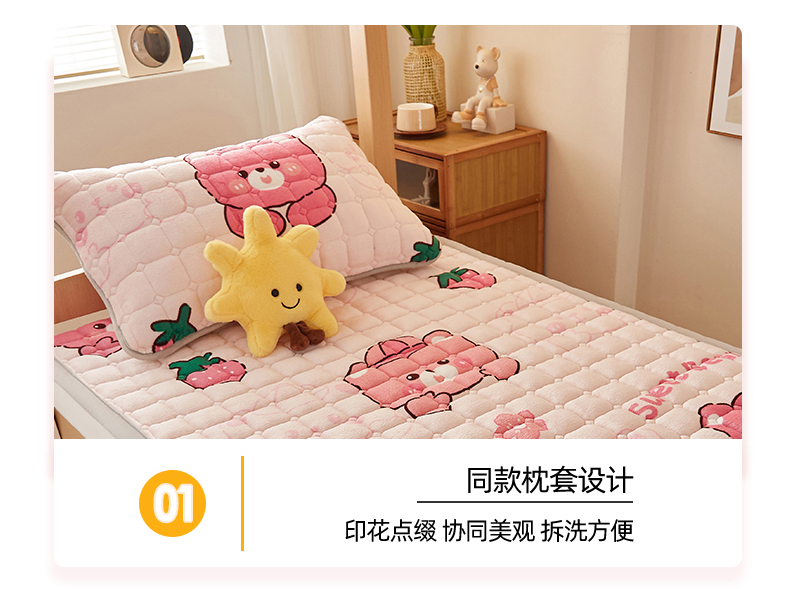 商品名称:奇丝雅 2025新款A类牛奶绒床褥床垫家用学生宿舍上下铺寝室软垫床护垫夹棉褥子-学生床单件 草莓熊