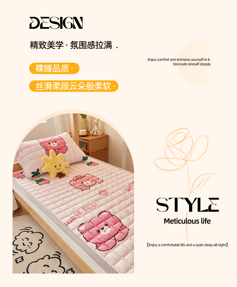 (总)奇丝雅 2025新款A类牛奶绒泡泡绒床褥床垫床盖兔毛绒家用学生宿舍上下铺寝室褥子软垫床护垫夹棉(大床)场景二,星星猫咪,月亮湾,趴趴狗,繁星,爱心咖,樱桃猫咪,幻影灰,暖绒蓝,清新绿,柔和蓝