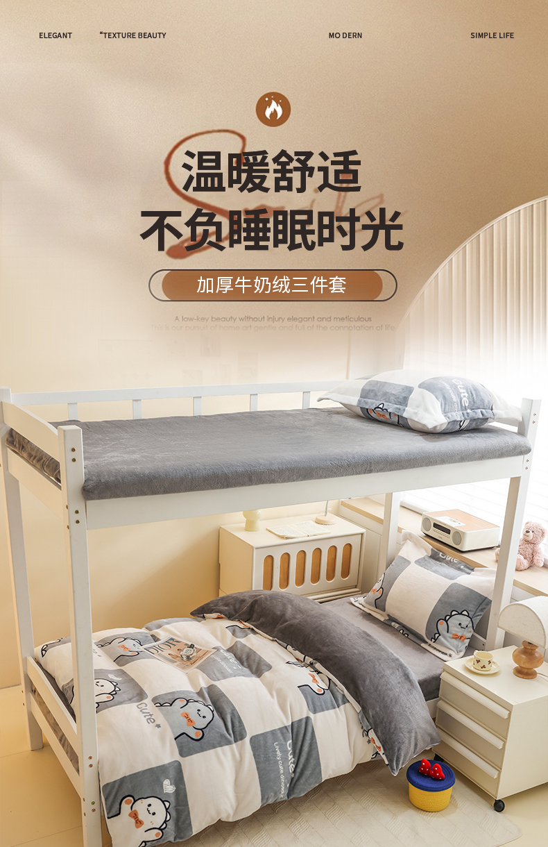 当前位置: 91家纺网 > 商品网购 > 床品套件 > 三件套 > 宅部落 2025新款学生宿舍牛奶绒三件套宿舍三件套上下铺三件套 小恐龙