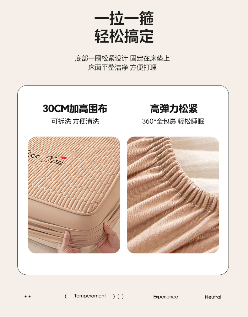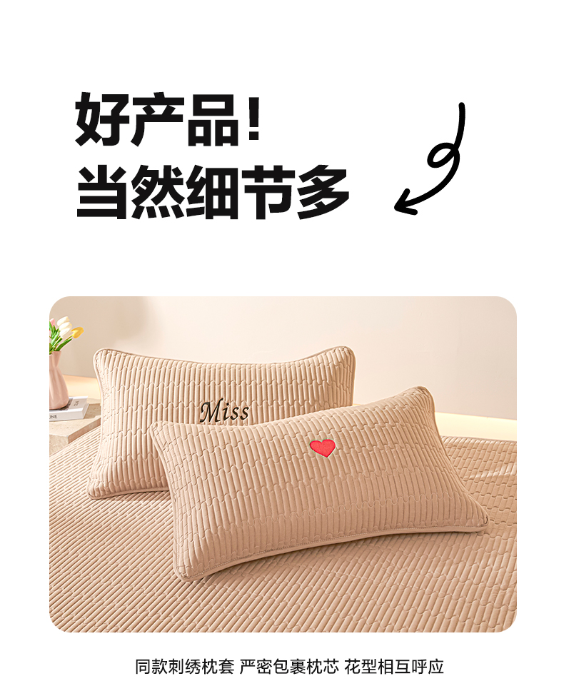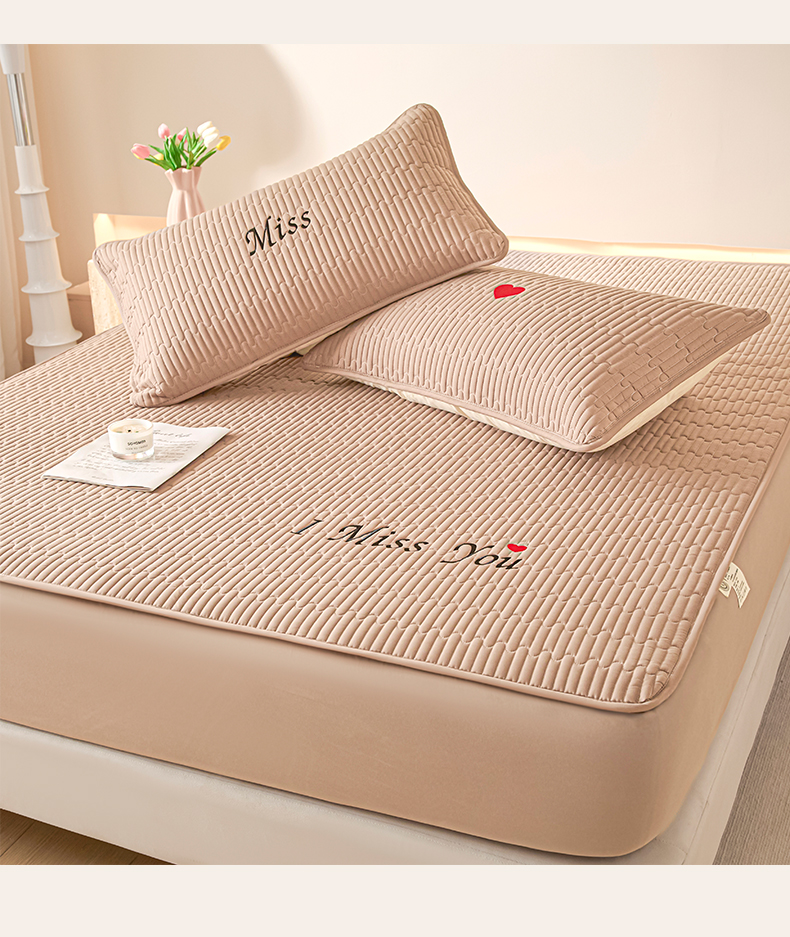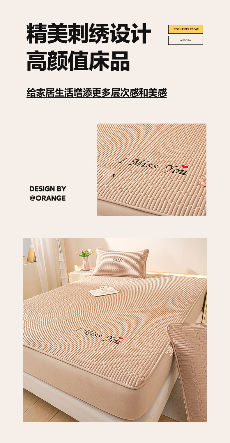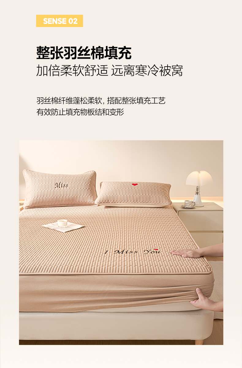• 91家纺网 家纺一手货源 找家纺 卡伦家纺 2025新款A类刺绣夹棉床笠情书系列 柔咖情书