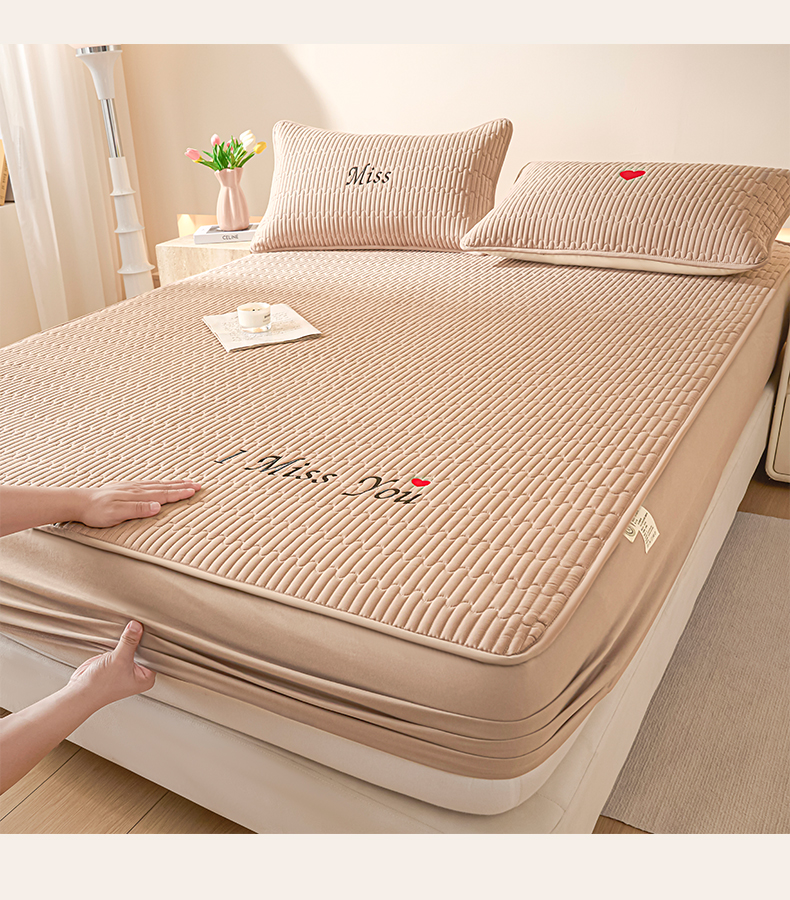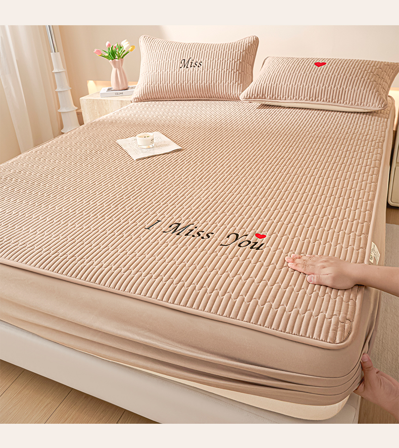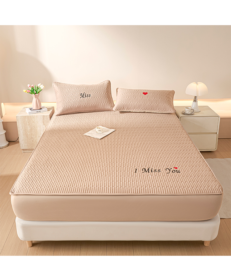卡伦家纺 2025新款A类刺绣夹棉床笠情书系列 柔咖情书