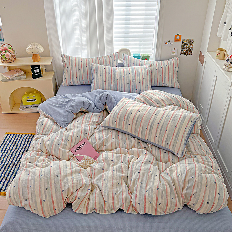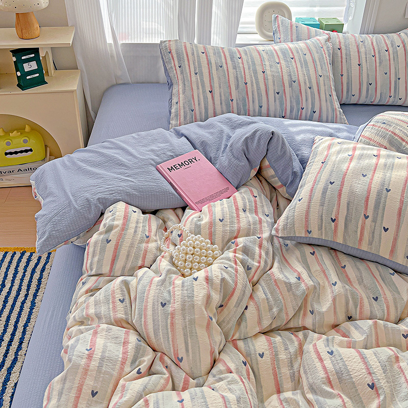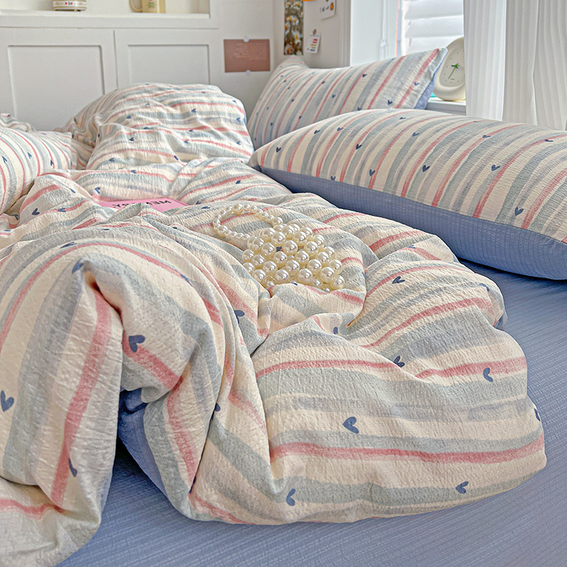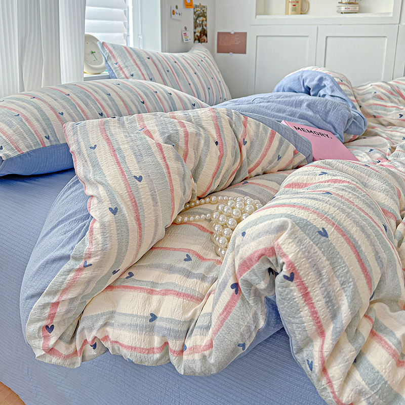 商品名称:一比一 2026新款云感皱皱双层纱四件套-简单款 蓝爱心