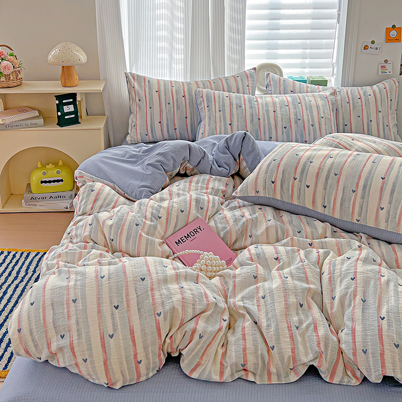 (总)一比一家纺 2026新款古法水洗仿棉云感纱A类四件套,知秋,白兰地,彩波波,草莓点点,格纹狗,嗨皮狗,赫莲娜,花千朵,花絮,酱果,蓝小格,莉莉安,梦幻灰,南瓜果果,葡萄,浅梦,森屿,疏影,甜心草莓,甜心喵,条纹狗,童趣,小黄花,小木马,小时光,小幸运,修修狗,薰衣草,灰樱桃,樱桃熊,鱼多多,组合图仅做展示不可下单