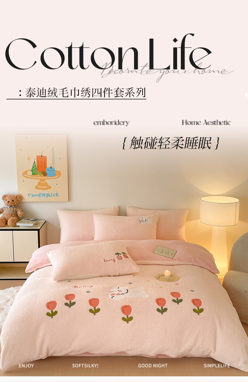 (总)川悦生活 2025新款泰迪绒毛巾绣卡通四件套,茶茶熊仔,狗仔派对,怪味南瓜,好梦小狗,花田兔宝,糯小熊,趣味萌宅,甜蜜兔妮,星空小象
