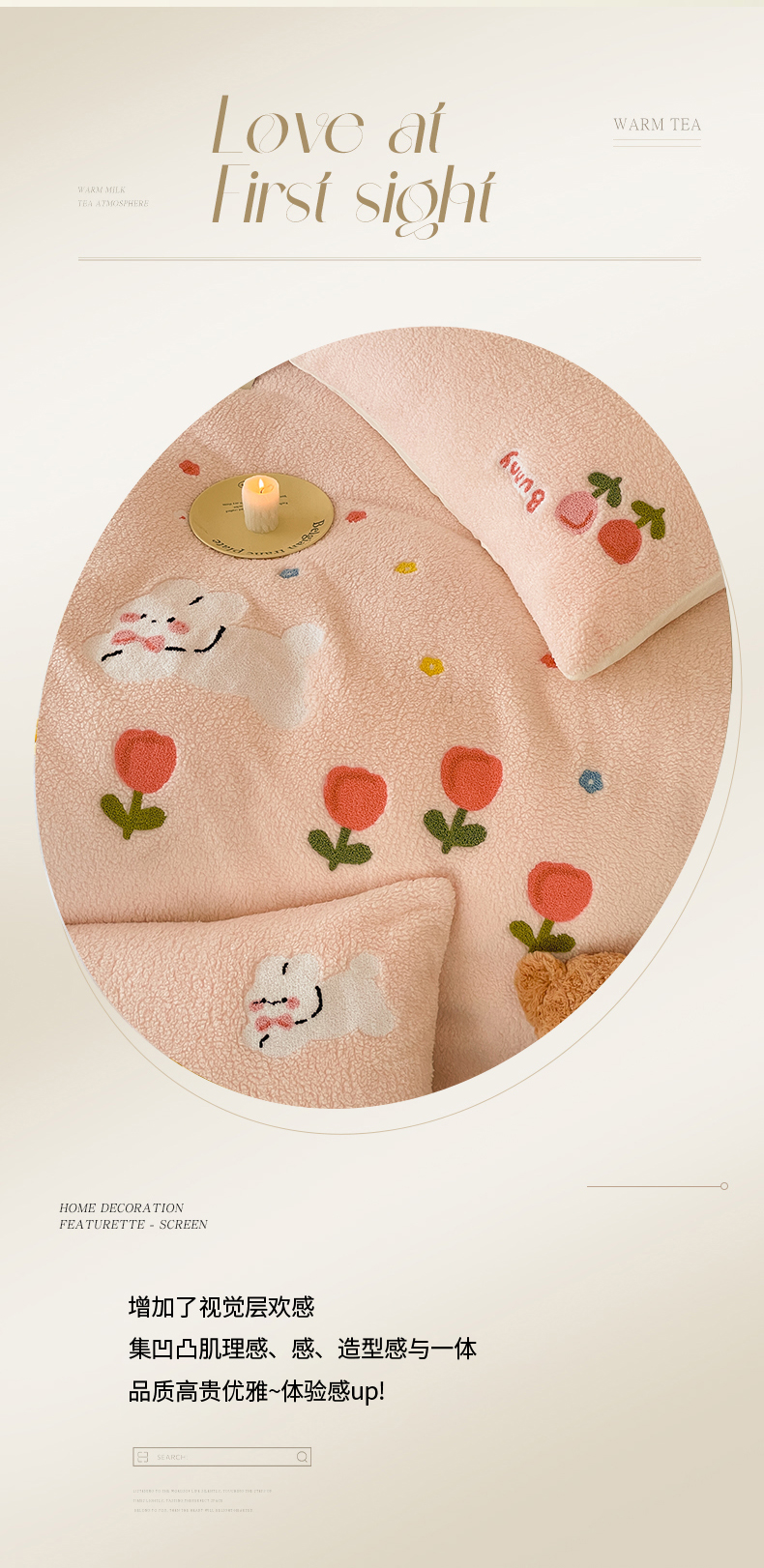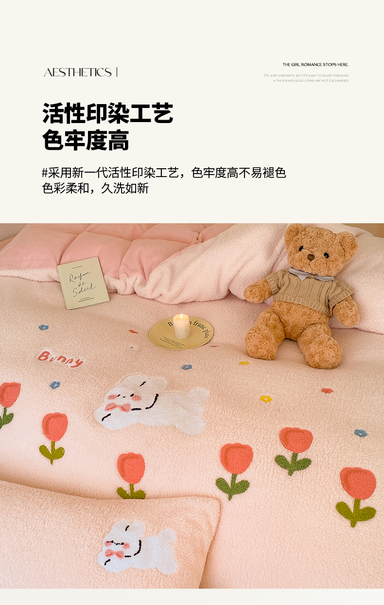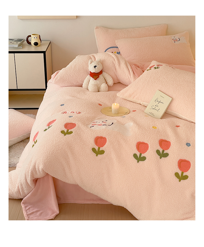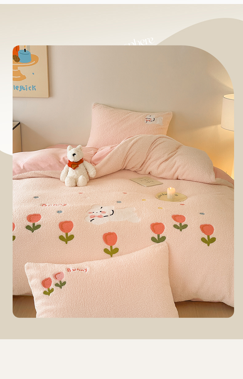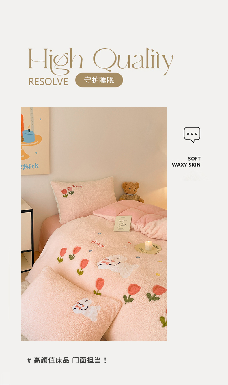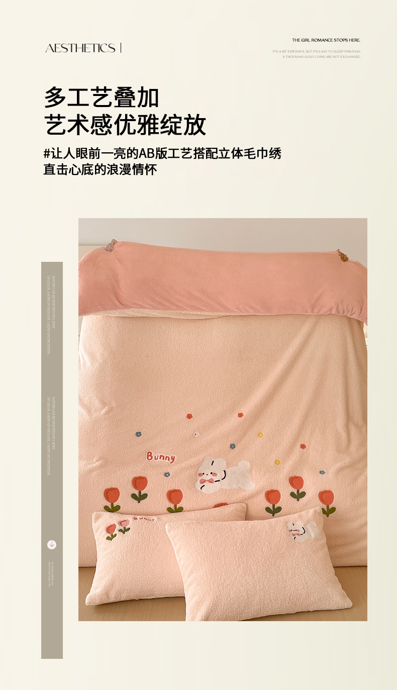 川悦生活 2025新款泰迪绒毛巾绣卡通四件套 花田兔宝