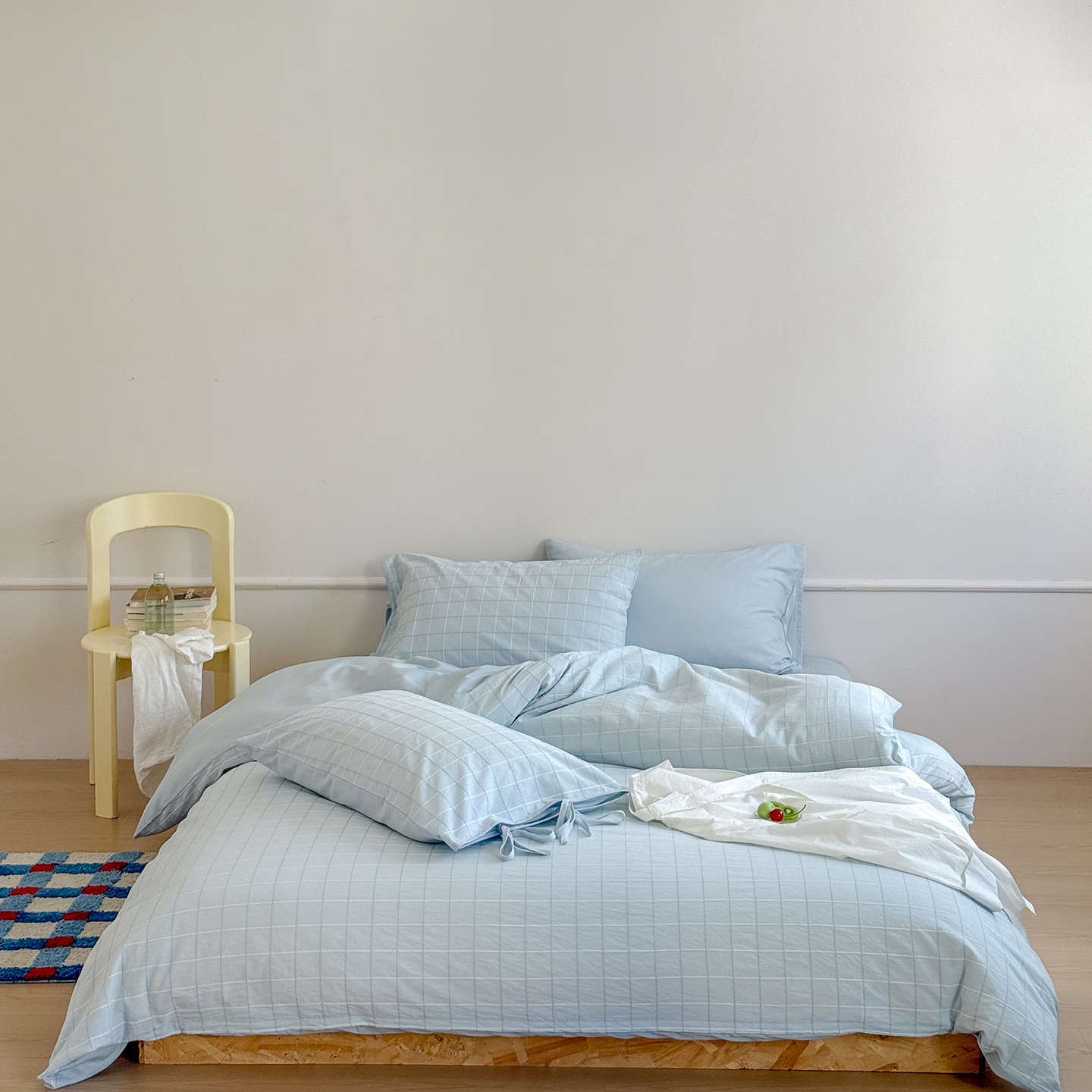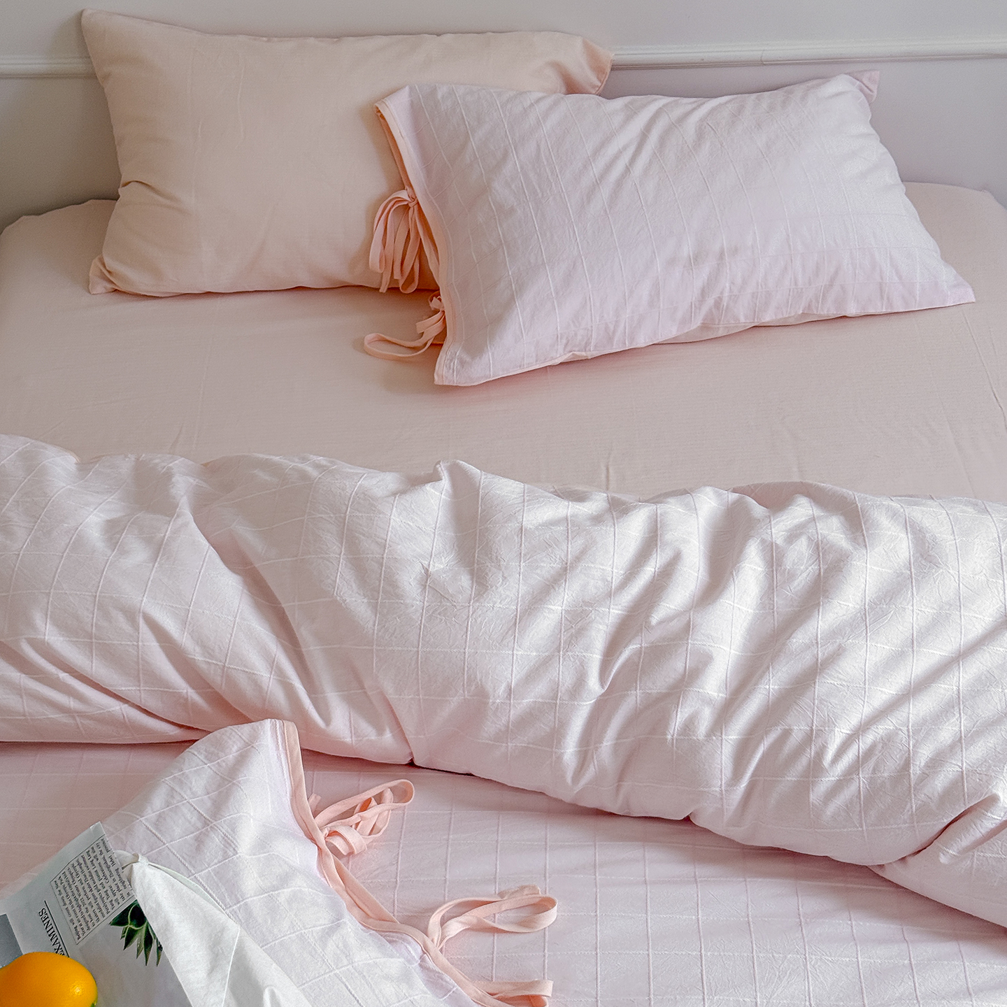 (总)小春日和 纯棉色织提花四件套人字纹全棉提花床单1.8米床笠民宿三件套加大纯色床单,泡芙-粉,泡芙-黄,泡芙-兰