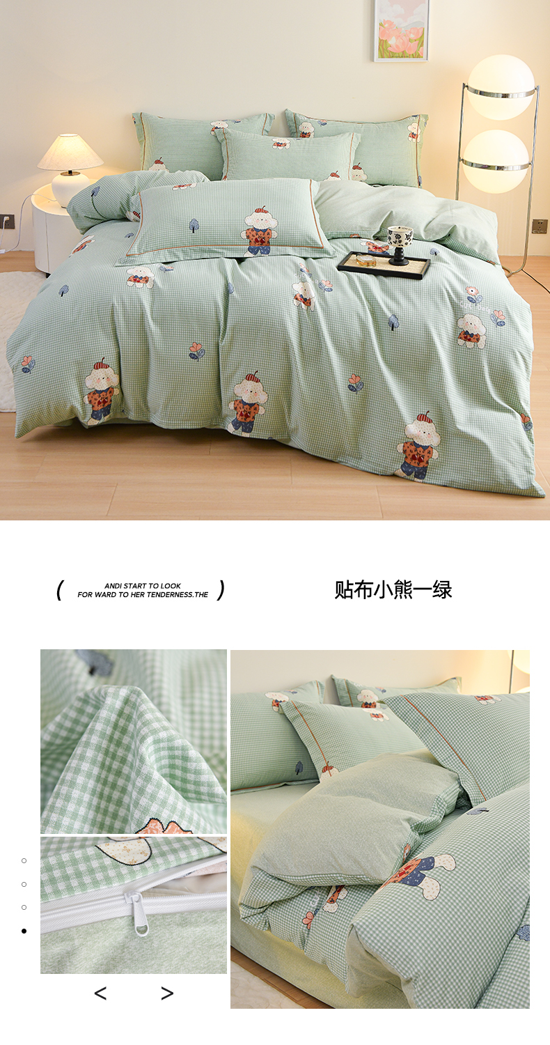 商品名称:铭浩 2025新款全棉纯棉数码印花四件套 贴布小熊-绿