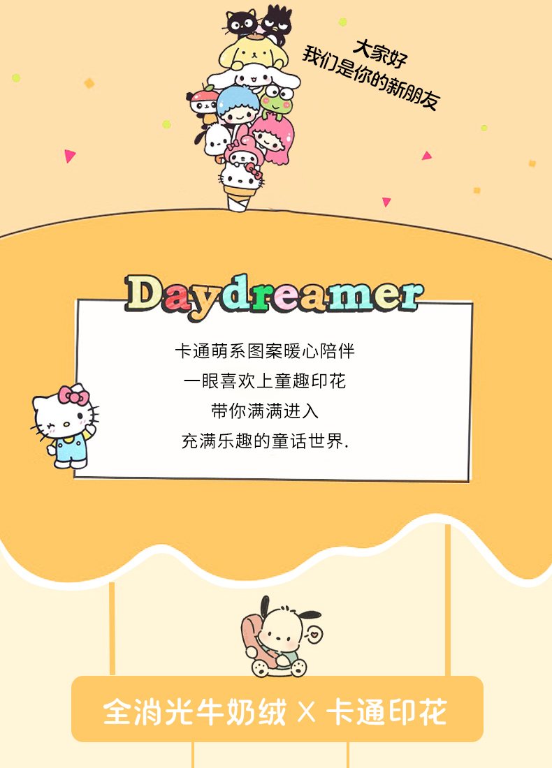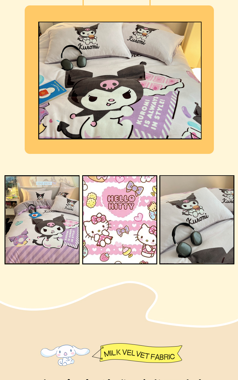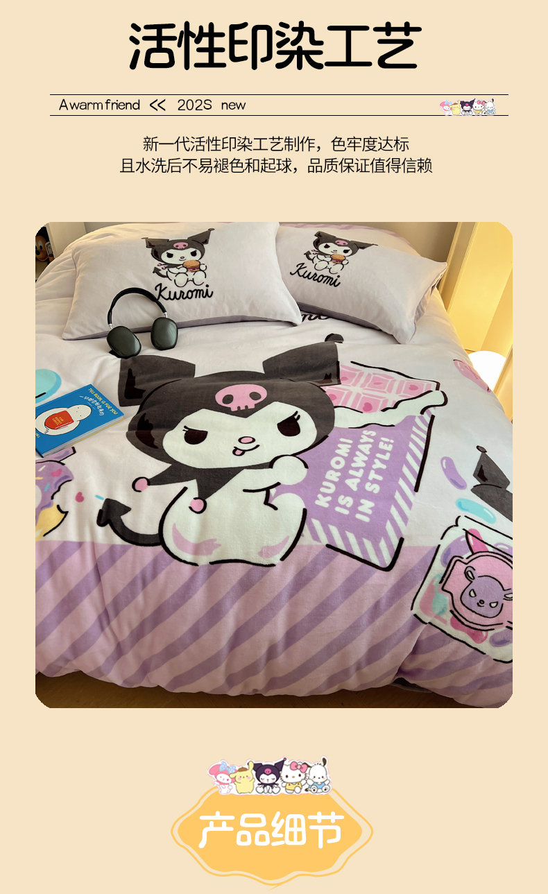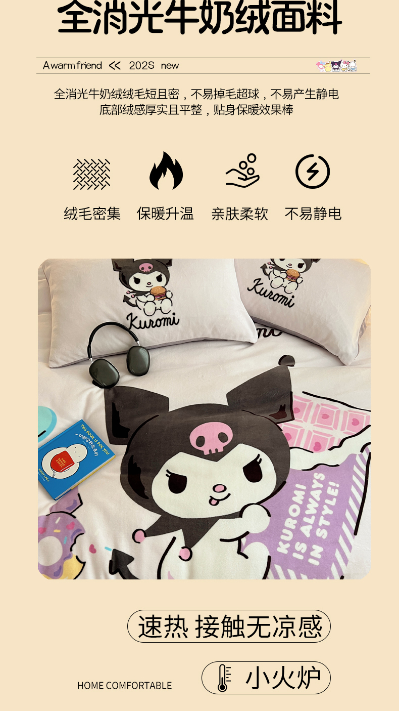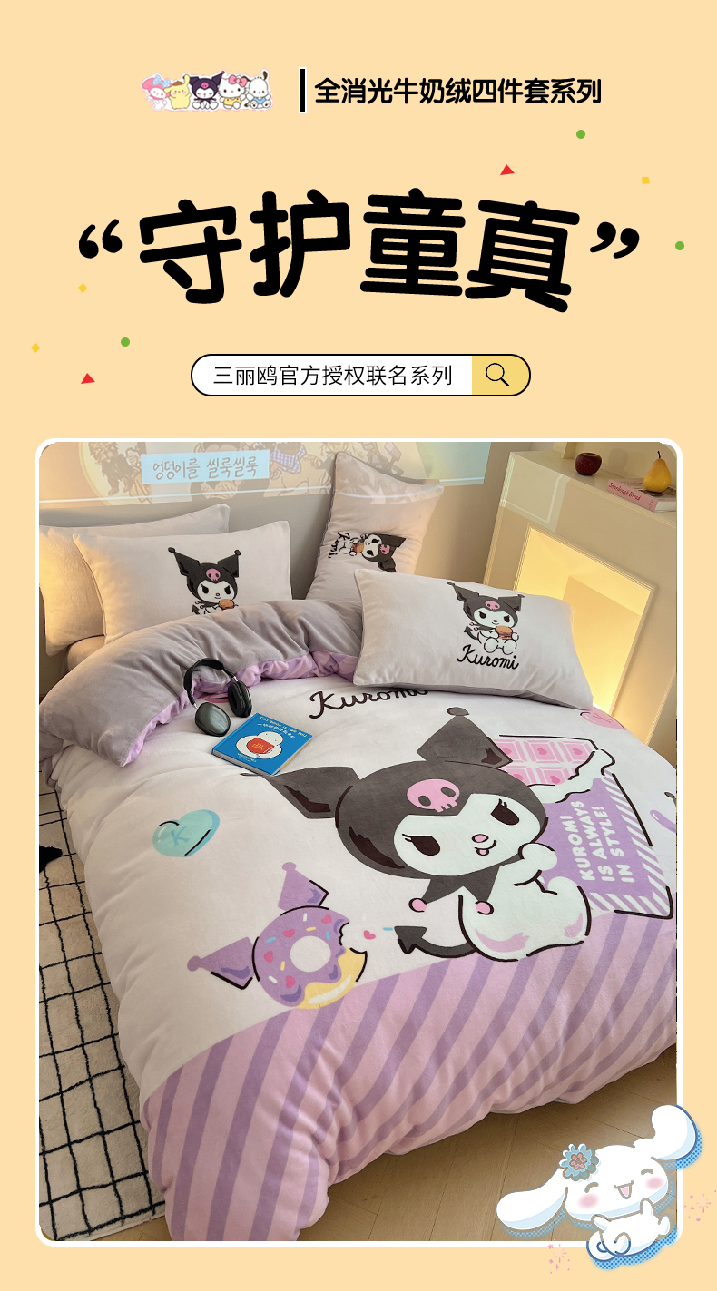 当前位置: 91家纺网 > 商品网购 > 床品套件 > 四件套 > 牛奶绒四件套 > 三朵家纺 2025新款数码大版牛奶绒印花三丽鸥系列四件套 天使库洛米
