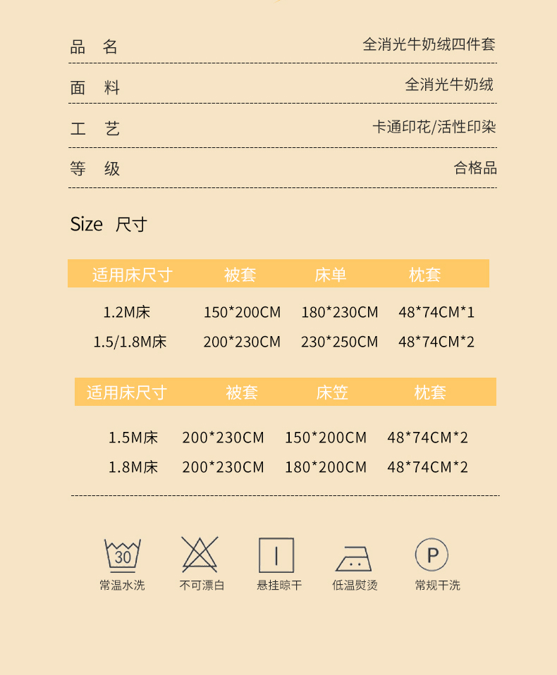 【床笠款】1.5四件套-被套200x230 | ¥125.00 |