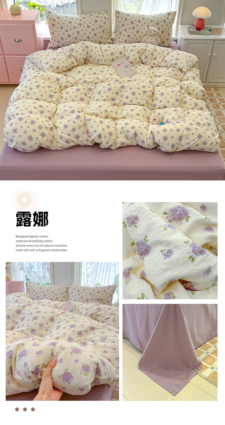(总)竹合 2026新款田园韩版花边款小碎花古法水洗仿棉A类云感棉四件套,篱陌,浪漫樱桃,暗香,半糖悠然,春野,花漫漫,花田故事,花田小狗,绿野仙踪,漫步花间,萌宠,暖暖,千寻绿,竖条樱桃,午后花园粉,午后花园紫,组合图